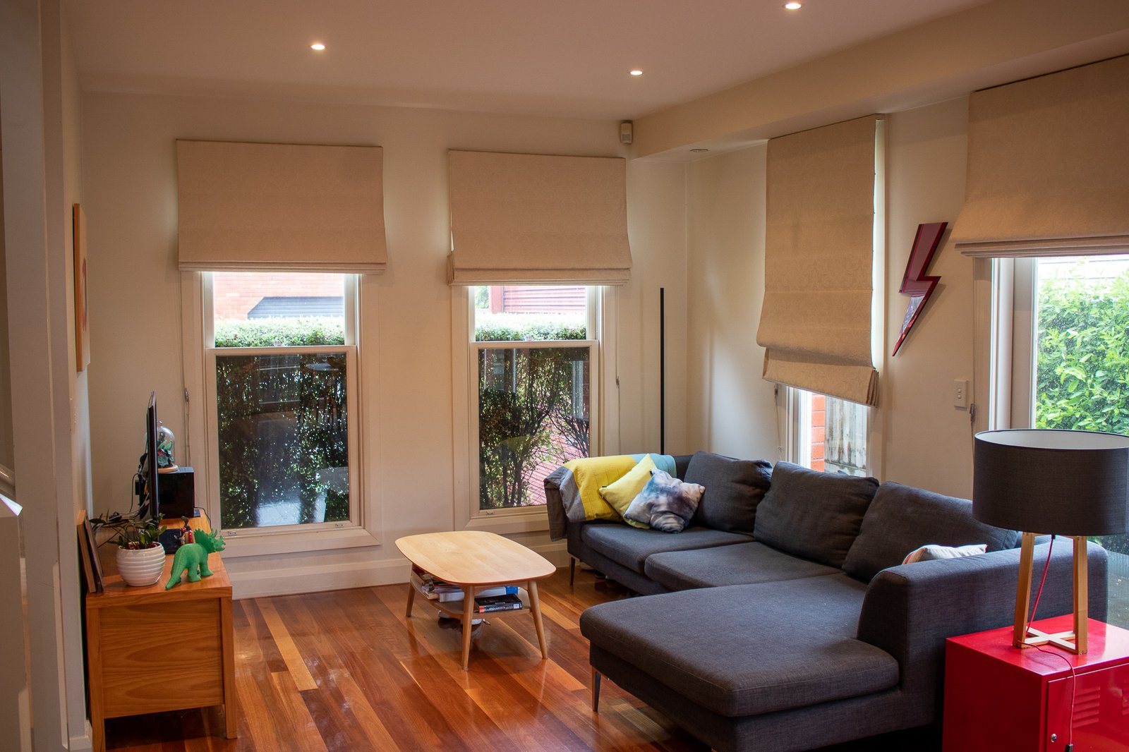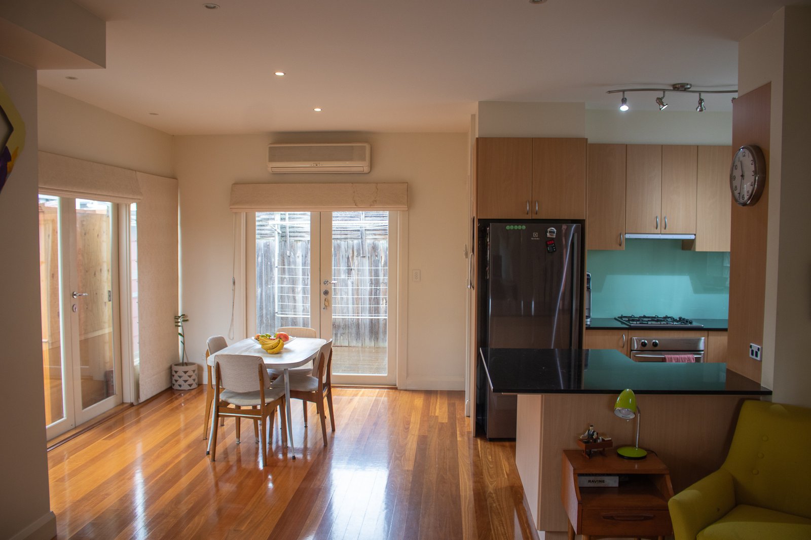 - Spacious open-plan living area with polished floorboards and split-system heating and cooling