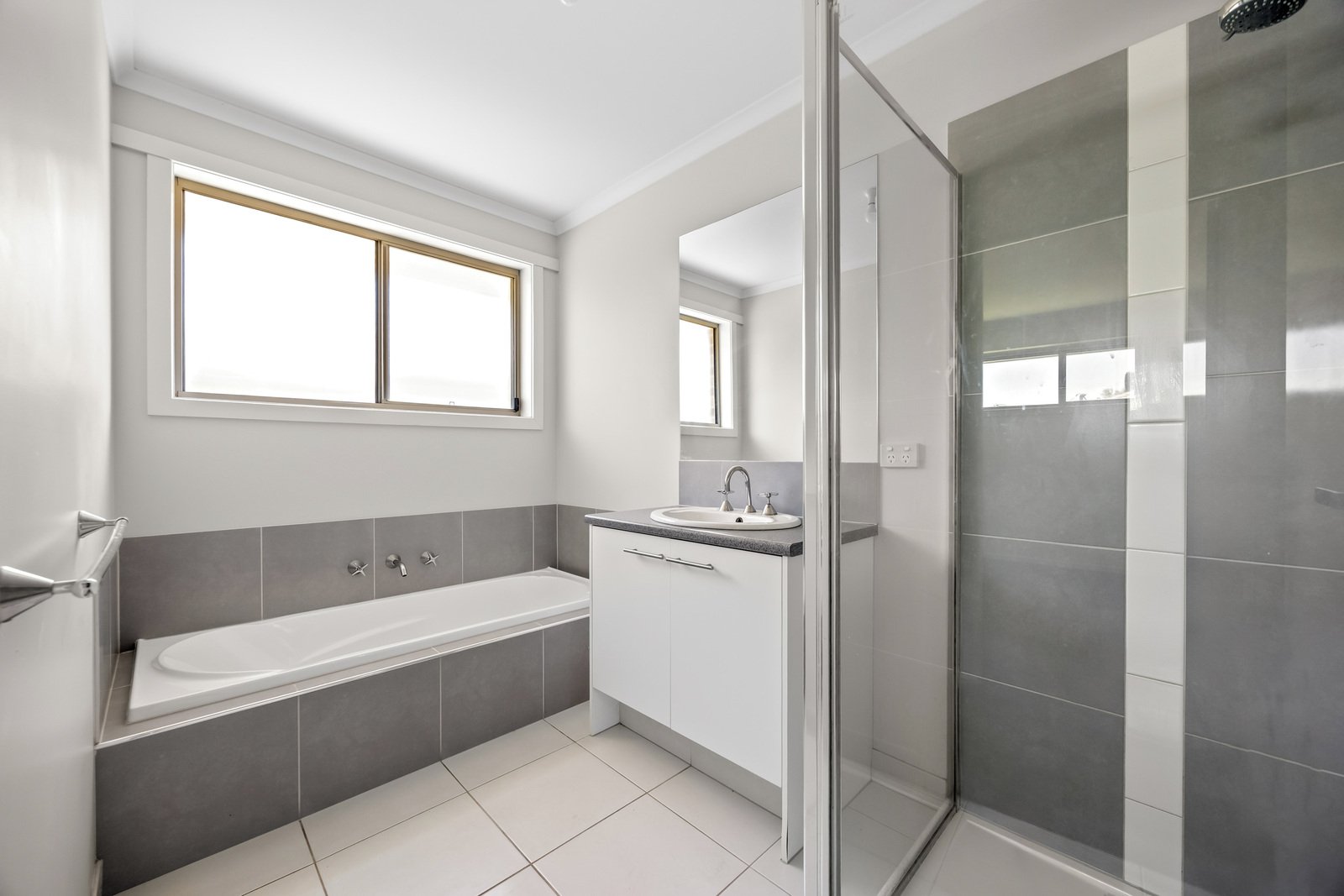- Main bathroom with shower, bath and vanity