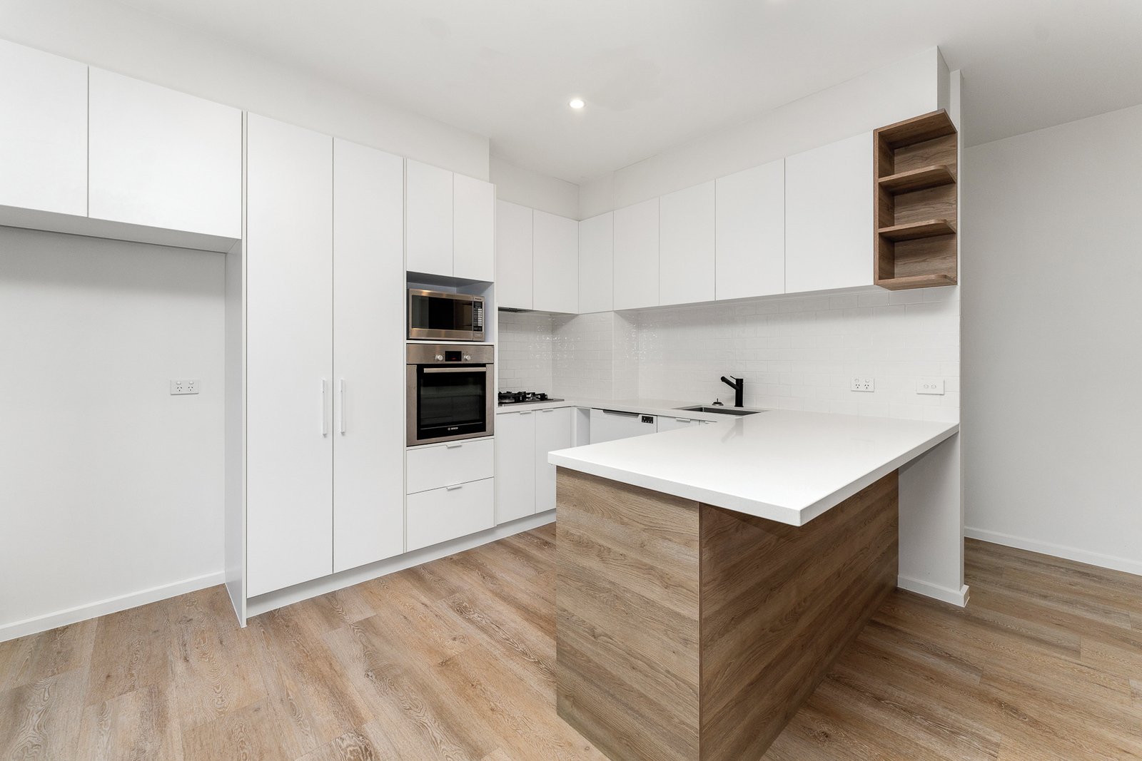 The modern kitchen overlooks the living space, perfect for everyday living and entertaining. The central bathroom includes a full-sized bath, complemented by a separate laundry for added functionality.