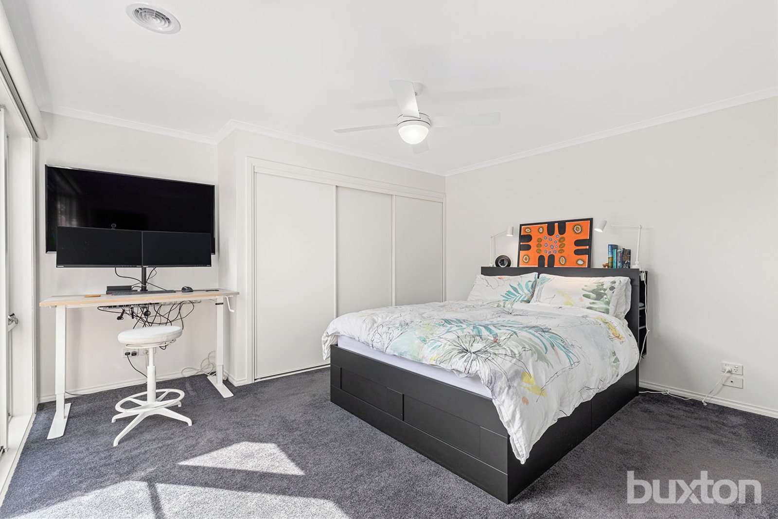 The kitchen offers a long breakfast bar, gas cooking, dishwasher, pantry, and ample storage. The master bedroom includes built-in robes, an ensuite, and direct deck access with space for a study desk.