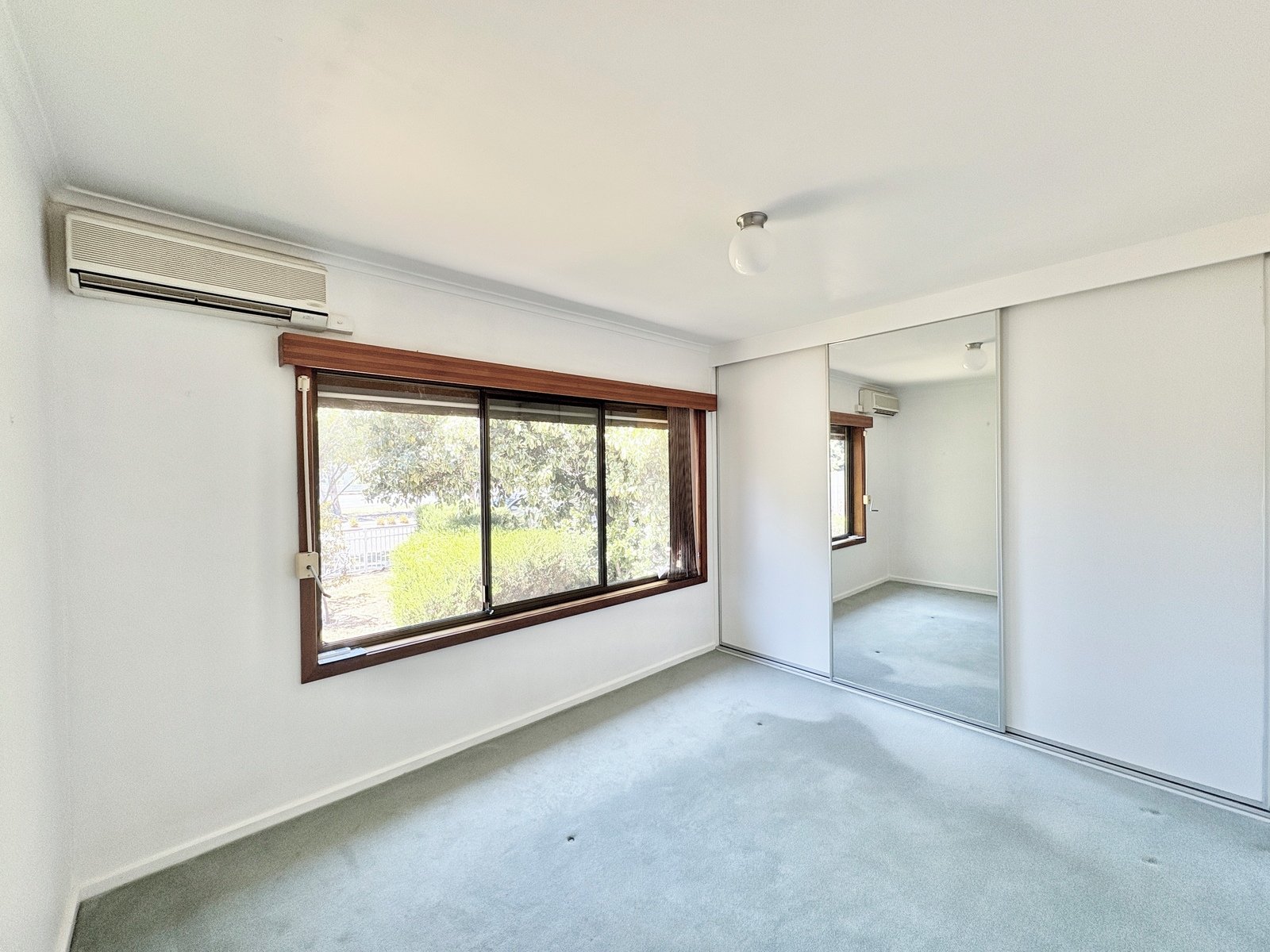 - Master bedroom featuring built-in robe and split system heating and cooling for year-round comfort