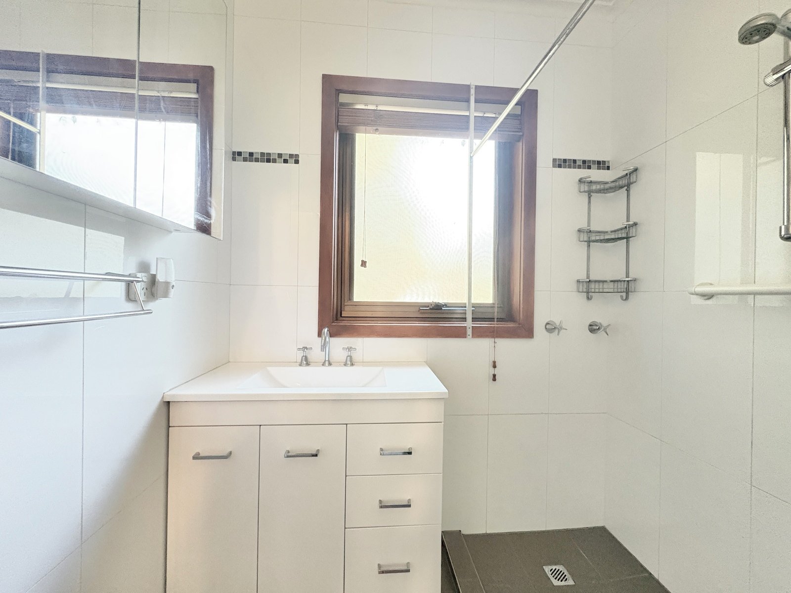 - Central bathroom with shower, vanity and separate toilet