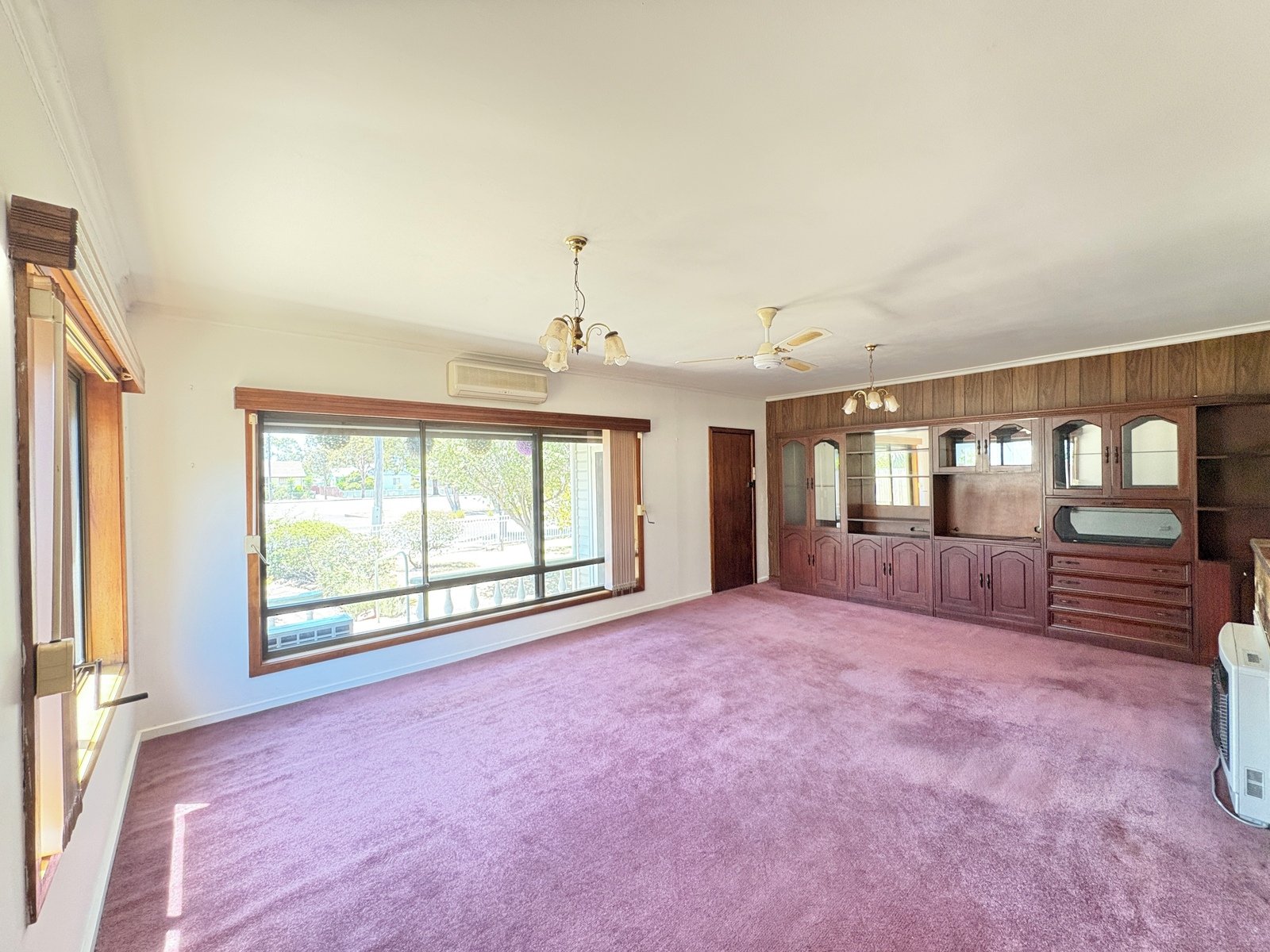 - Light-filled living room with gas space heater and split system heating and cooling for year-round comfort