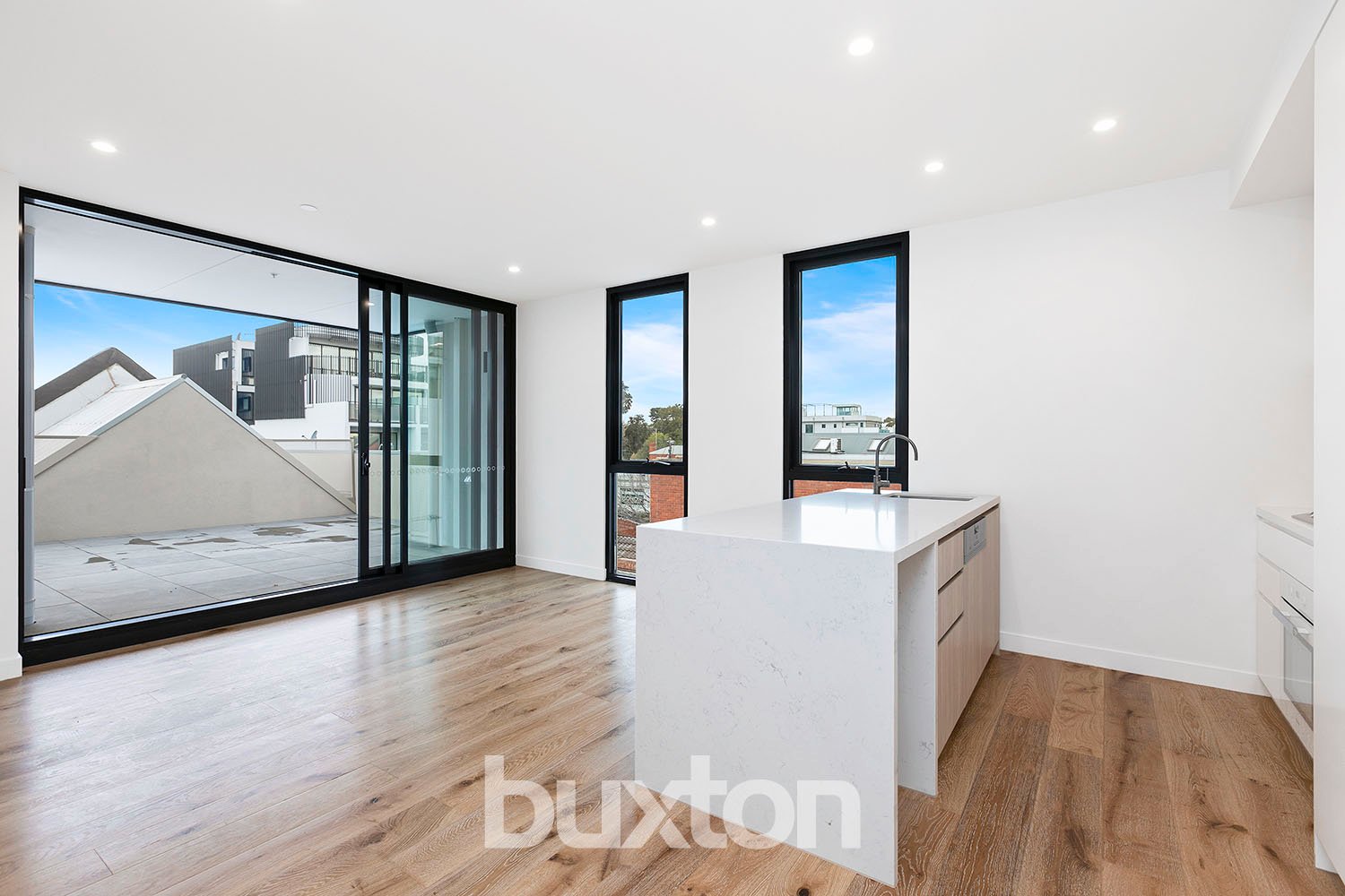 Two-bedroom apartment located in the boutique Hartsman development in the heart of Hampton. The apartment features a light-filled open-plan living and dining area opening to a large paved terrace.