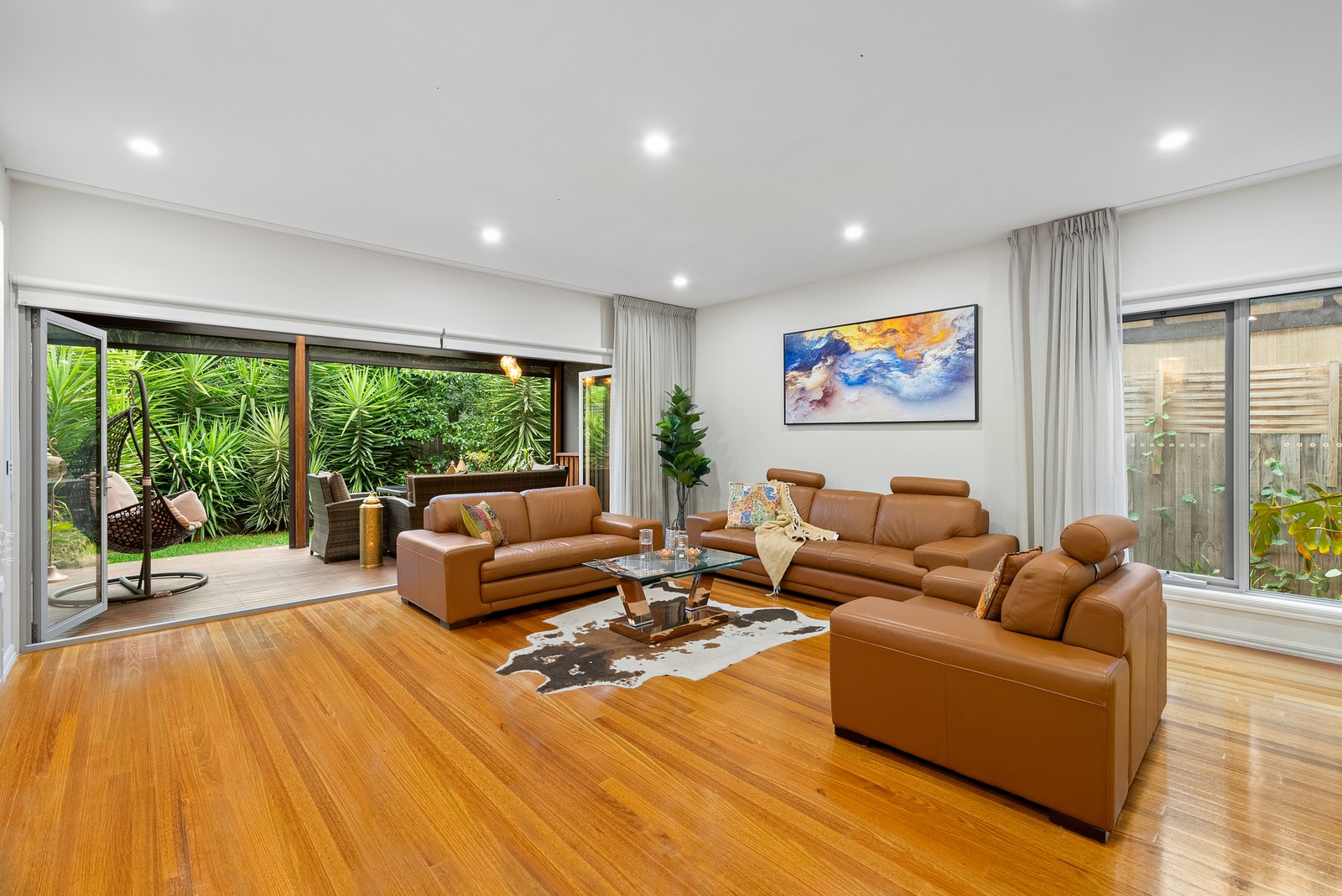 This architecturally designed 4-bedroom property, with the versatile options of a study or 3rd living area, 3 bathroom town residence delivers exceptional custom finishes throughout. Hardwood flooring and a striking timber-and-glass floating staircase, illuminated by a stone and lighting feature beneath, create an immediate sense of architectural sophistication.