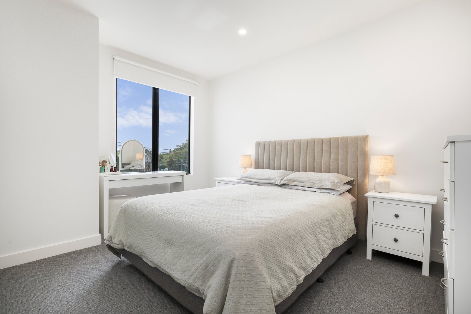 The contemporary kitchen is thoughtfully designed with stone benchtops, quality stainless steel appliances, ample cabinetry and a breakfast bar ideal for casual meals. Accommodation is well considered, featuring two generously sized bedrooms with built-in robes, including a master bedroom complete with a stylish ensuite, while a second sleek bathroom services guests and the second bedroom.
