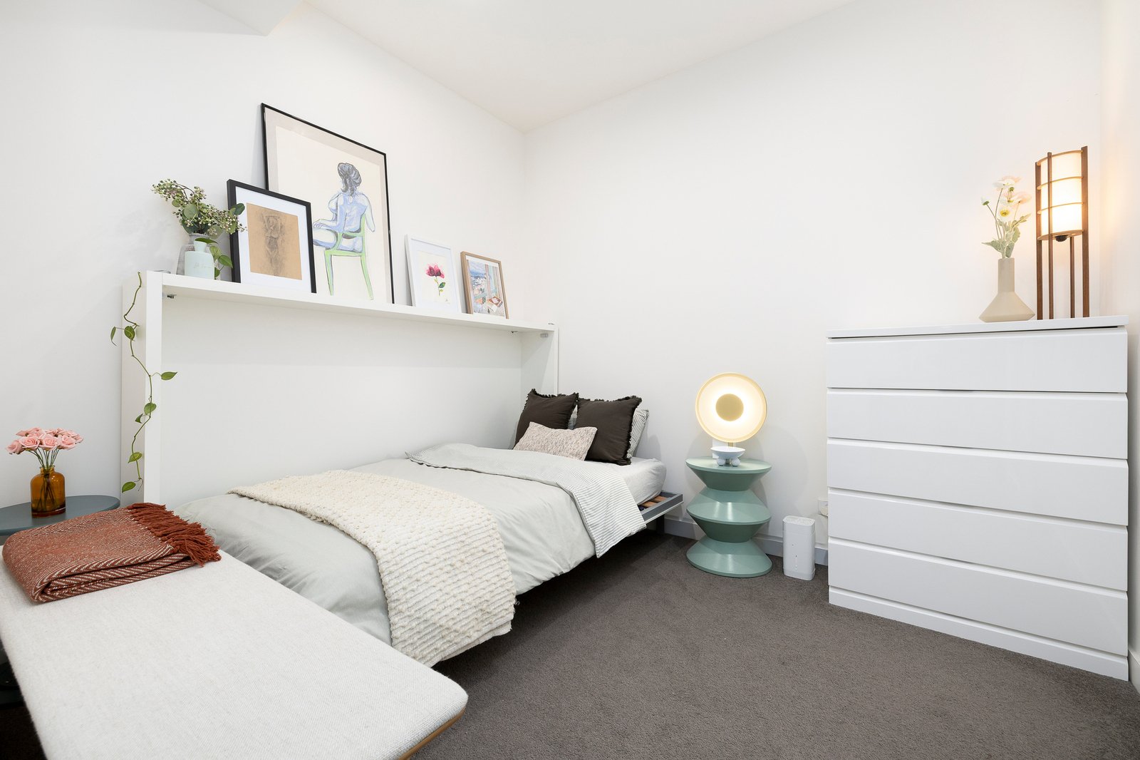 The generously proportioned bedroom features remote-operated blinds for added comfort and convenience, while the separate study offers flexibility for working from home, creative pursuits, or additional storage. A sleek central bathroom and discreet Euro laundry complete the interior, while split-system heating and cooling ensure year-round comfort. Secure video intercom entry provides peace of mind.