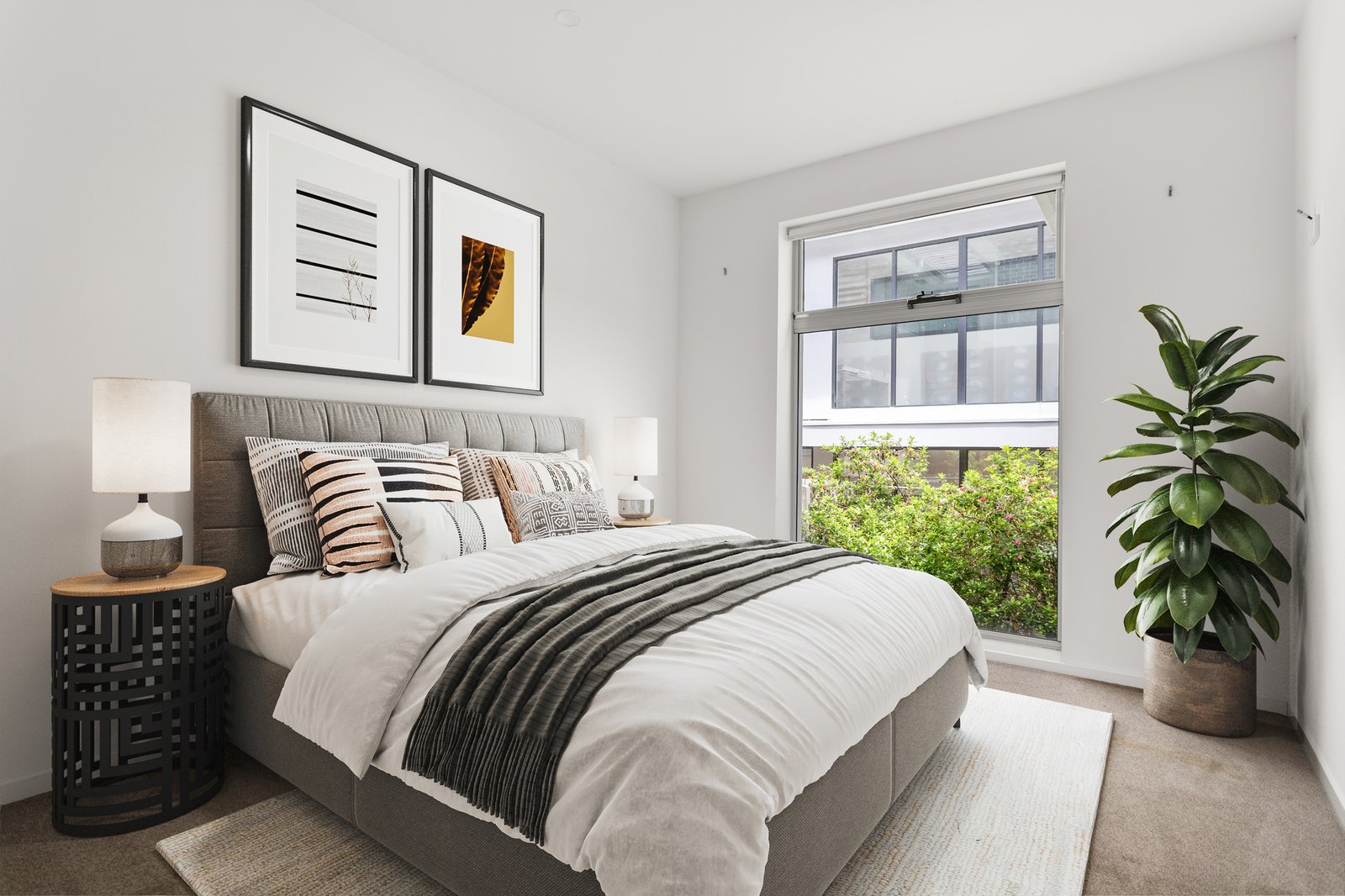 Inside, flawless interiors reveal a sun-drenched open-plan living and dining area, complemented by a sleek Caesarstone kitchen. Outdoors, the expansive paved courtyard creates an enviable setting for entertaining, relaxing or soaking up the sun.