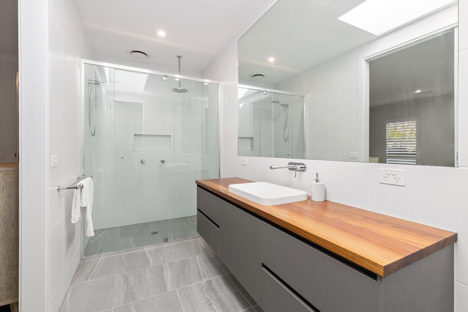 • Stylish kitchen with quality fixtures, stone benchtops, dishwasher, double oven, 900mm gas cooktop and walk in pantry