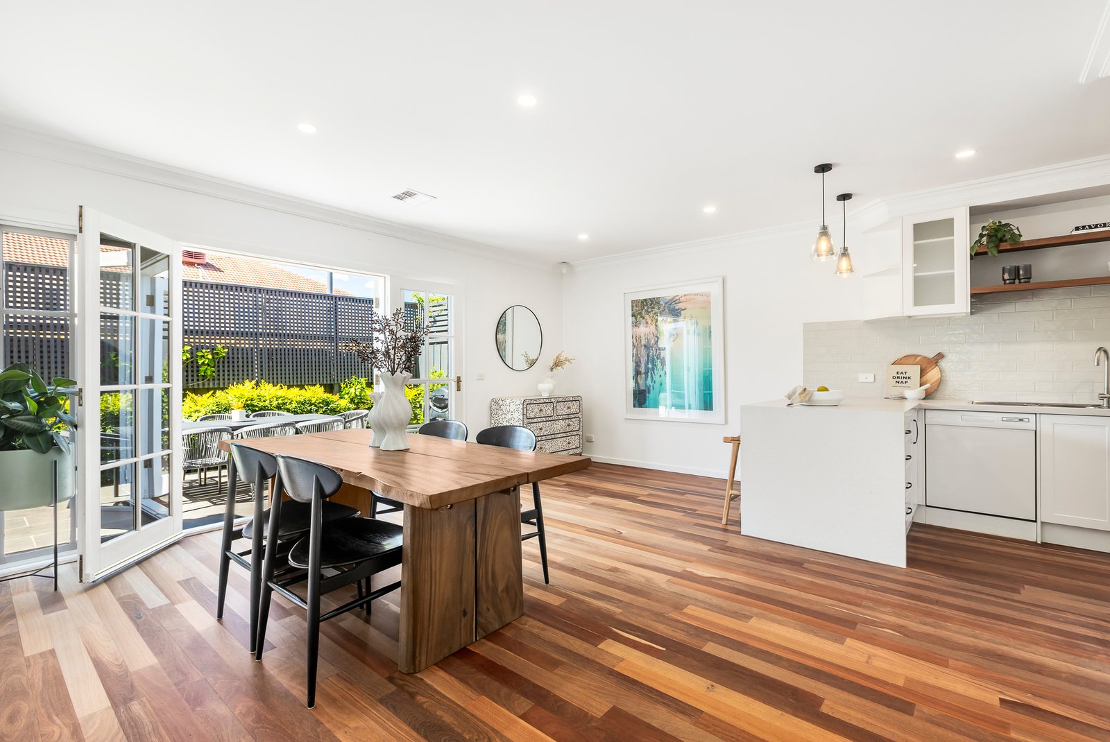 At the heart of the home, light-filled interiors flow seamlessly to a private north-facing courtyard, creating a low-maintenance, outdoor retreat ideal for alfresco dining, entertaining or relaxed family time.