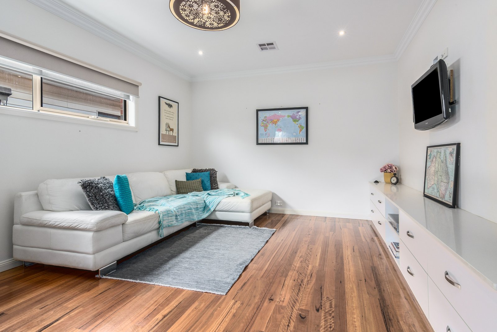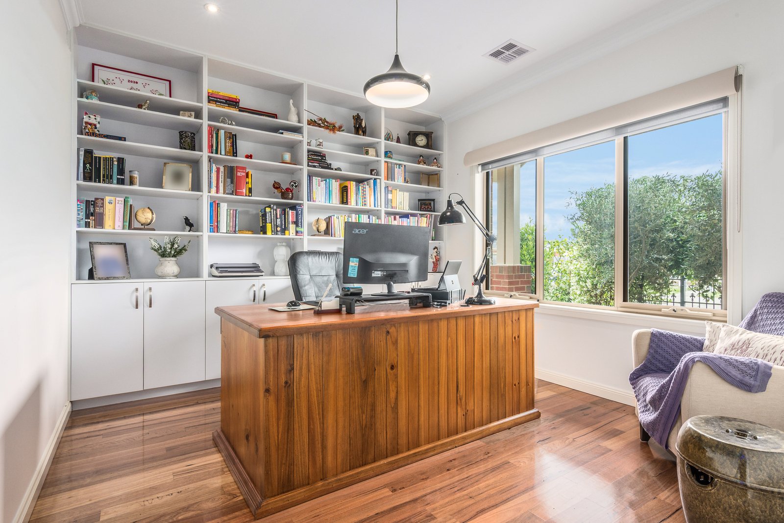 Set behind flourishing cottage gardens, the traditional façade is timeless in appeal. Stepping inside, beautiful hardwood timber flooring, light neutral interiors and decorative cornice introduce the sophisticated style within. A dedicated study off the entry features built-in shelving and storage, providing the perfect space to work from home. Further on, a formal lounge offers a quiet space to retreat, with built-in joinery adding both style and function.