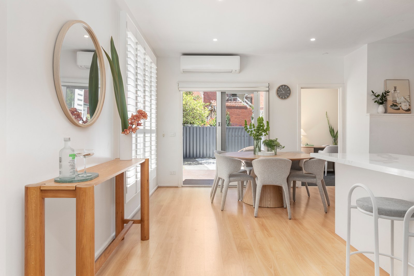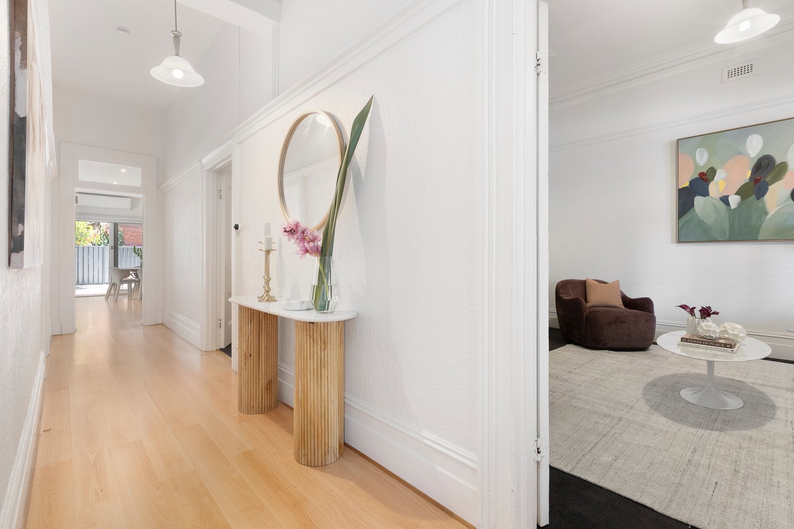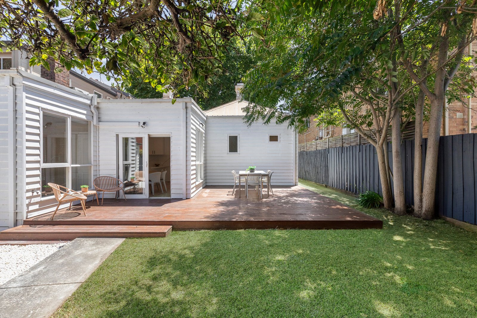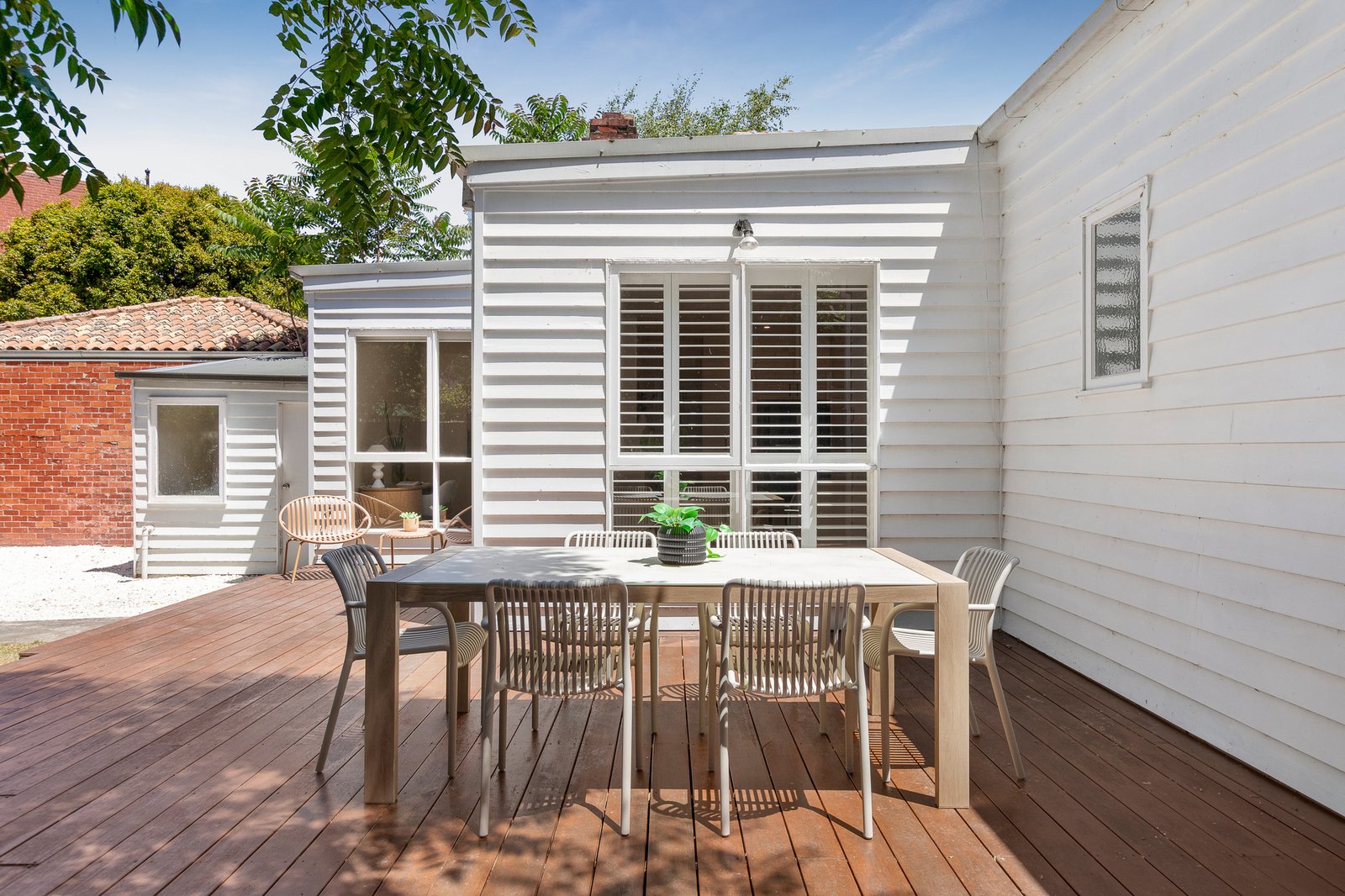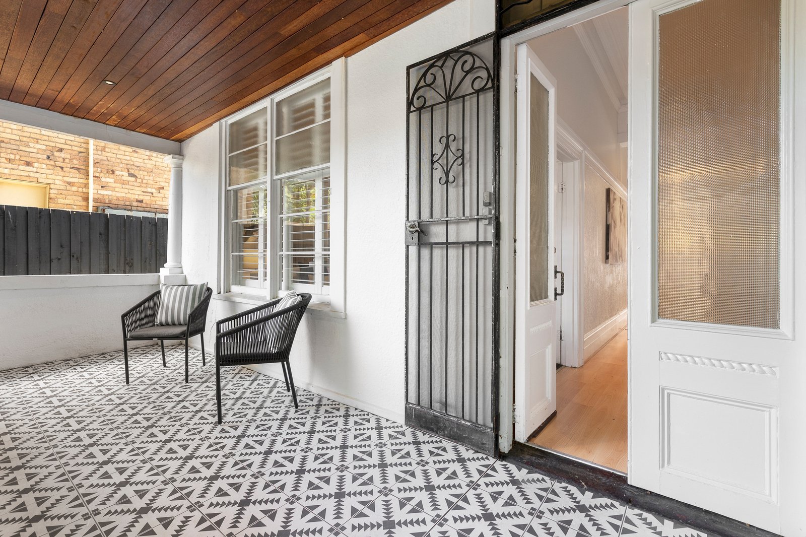 Nestled in leafy landscaping behind a broad St Kilda frontage, a deep verandah entry gives way to a traditional double fronted layout in which 4 original rooms retain their high ceilings, chimneys/fireplaces and charming French doors. At the rear, beautifully bright open plan living/dining areas and a large gourmet kitchen step out to expansive alfresco decking and a sun-filled rear garden featuring workshop/storage and secure parking via rear ROW. Accommodation features 3 oversized bedrooms, including the main with OFP and ensuite, second living/ 4th bedroom with fireplace, dream contemporary kitchen with chic stone benchtops, extensive storage and dining bar, updated bathroom, split heating/cooling, plantation shutters, established front and rear gardens, jet ski/trailer and two car OSP.