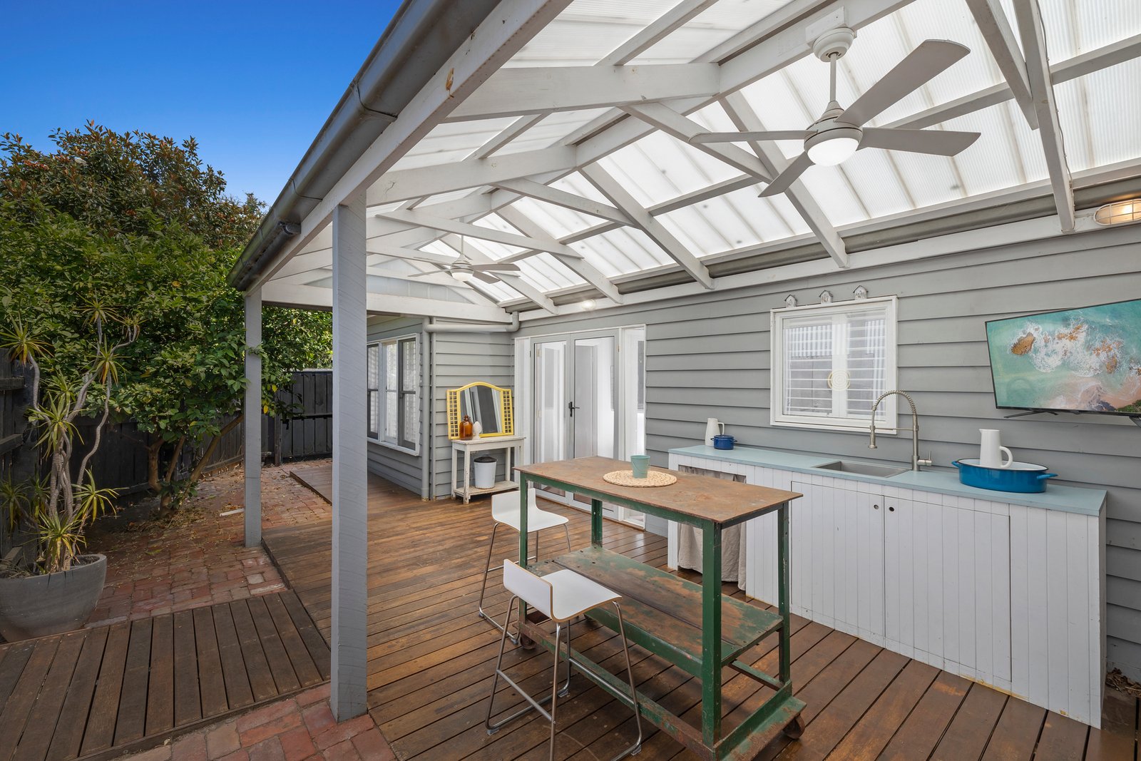 Sitting picture-perfect beyond a charming façade and pretty front deck, this inviting weatherboard beauty delivers stylish living on its own allotment, providing desirable, low-maintenance independence. Vibrant timber floors and plantation shutters add timeless character to a north-facing living room, warmed by an ambient wood heater, and flowing...