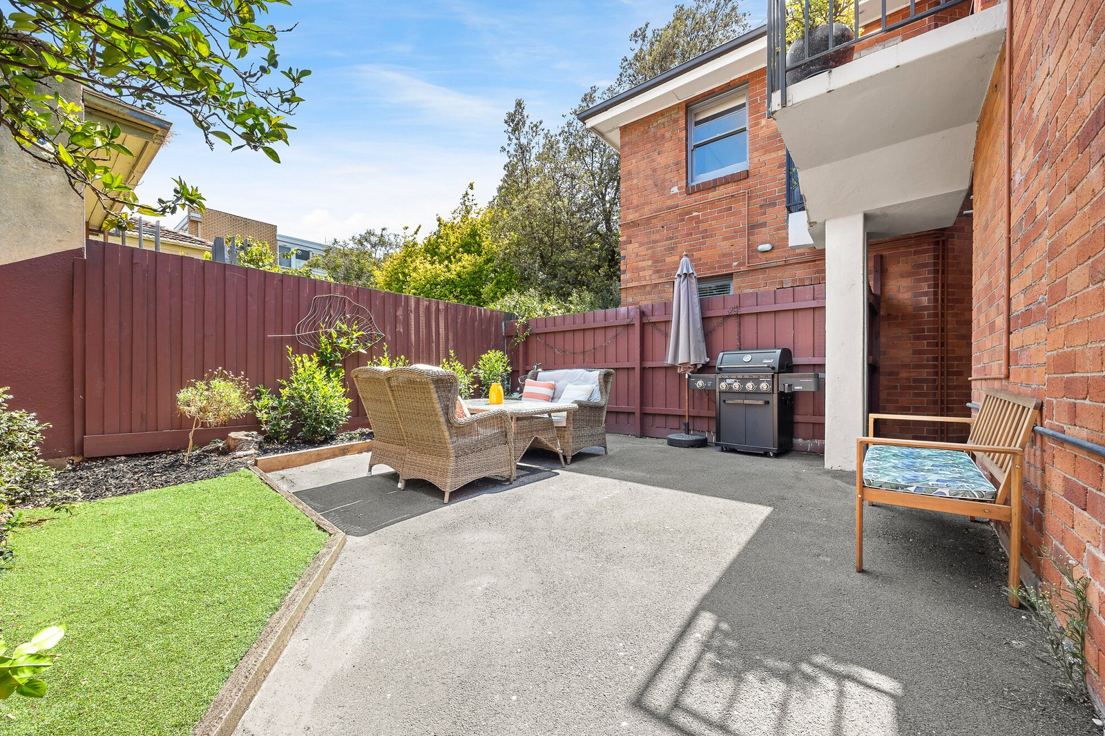 Wide-reaching open-plan living and dining is warmed by a charming gas fireplace, while a stone-finished kitchen showcases ample bench and storage space and stainless-steel Blanco appliances including a full-sized dishwasher and a 4-burner gas cooktop. Step outside to the star of the show and entertain in an oversized courtyard, framed by a private sheltered alcove, easy-care lawn, and a freshly landscaped garden. Just add guests and this is alfresco perfection!