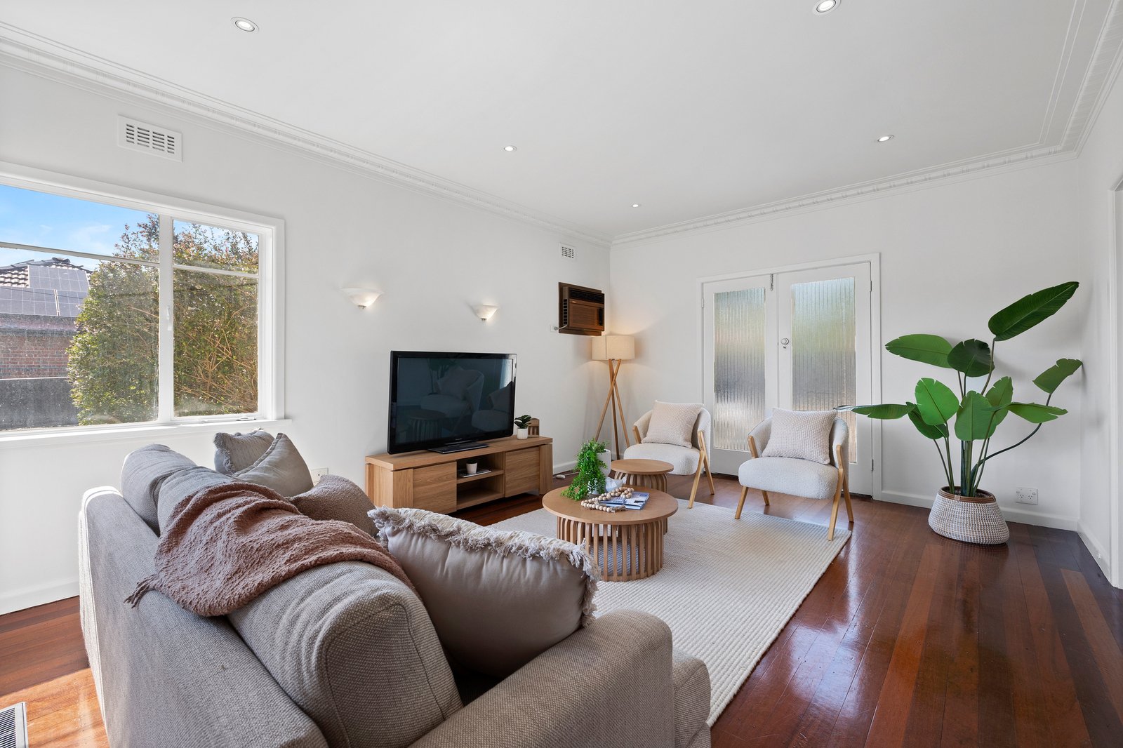 Step inside to find lovely late-period charm with rich red hardwood floors, lofty decoratively-corniced ceilings, a wide corner window catching a view to broad front lawns and tall French doors opening out to the paved rear yard. Freshly painted and newly polished, this super-solid home is upgraded with a quality kitchen featuring Smeg appliances (including a gas-cooktop), a classic stone-finished bathroom plus a second WC and a large family laundry,