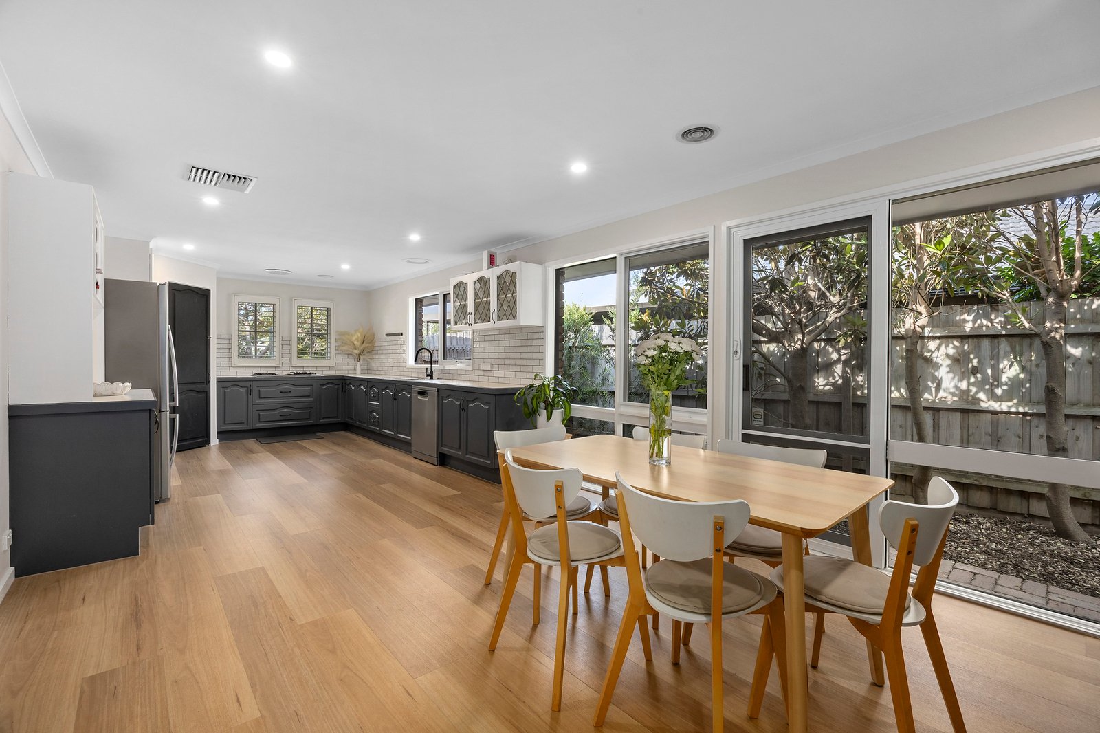 Tucked behind a picket fence amongst lush garden surrounds, this 4-bedroom, 2-bathroom dual living home sits within a highly-appealing quiet court setting just minutes from the beach. Bathed in soft natural light, the inviting lounge room enjoys the warm ambiance of a wood heater, while contemporary timber-style hybrid floors flow underfoot. A separate casual open-plan living zone offers enviable family space to relax, complemented by a gorgeous kitchen brimming with stylish charm. Three robed bedrooms each offer their own serene retreats, complemented by a sublime main bathroom with a freestanding bath, while the master enjoys the luxury of a walk-through robe and matching rain shower ensuite. Yet it’s the covered alfresco deck that steals the show – a relaxed space framed by your private garden paradise, wonderful for summer barbeques as kids and pets play. Complete with solar panels, evaporative cooling and ducted heating, together with a chic laundry and powered outdoor workshop/storage – this enchanting sanctuary is ready to enjoy. Located just steps from the Seaford Wetlands and the Weatherston Reserve Playground, families will also appreciate being within a short stroll of Seaford Primary School, Seaford Village, the station and one of the best beaches along the bay.