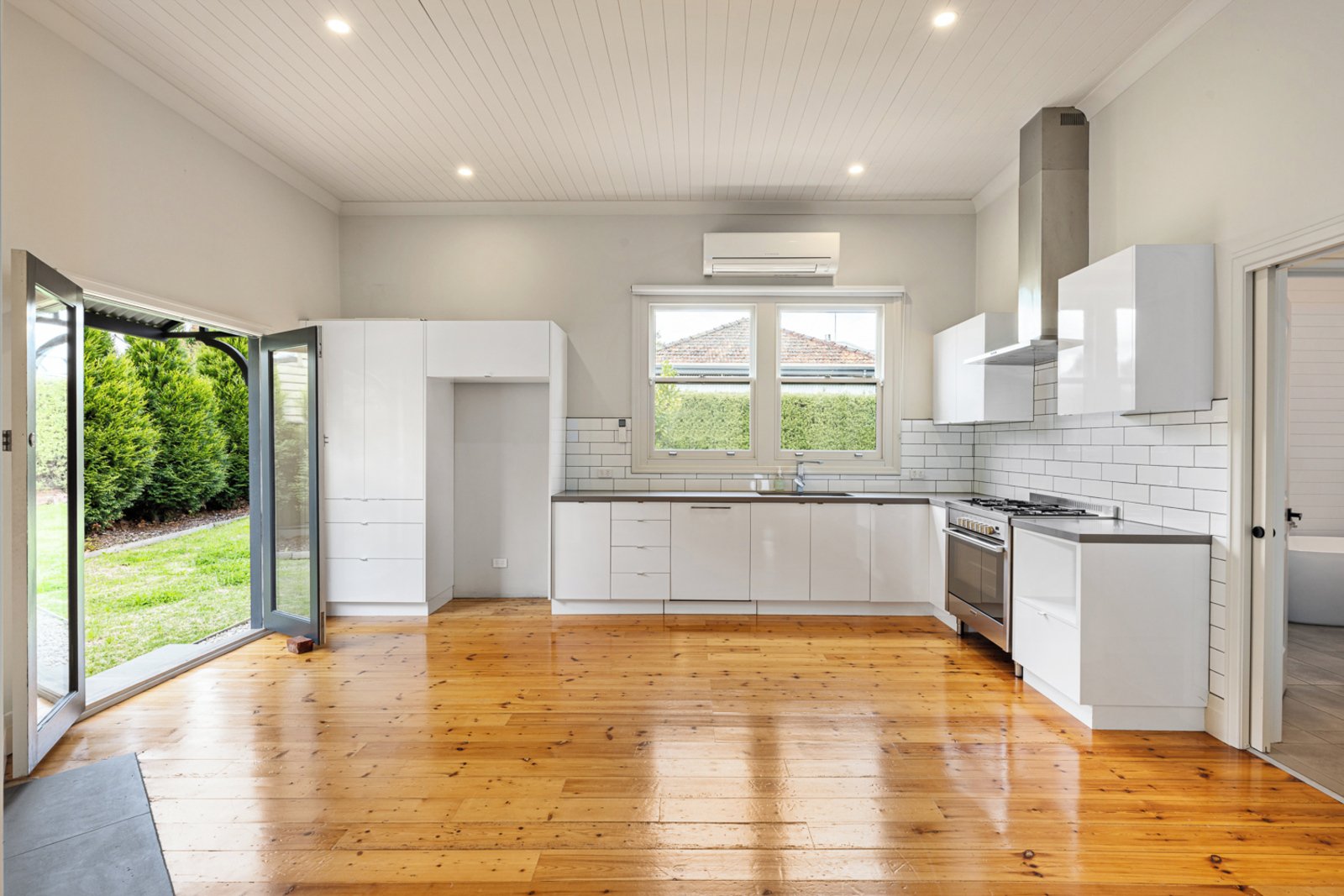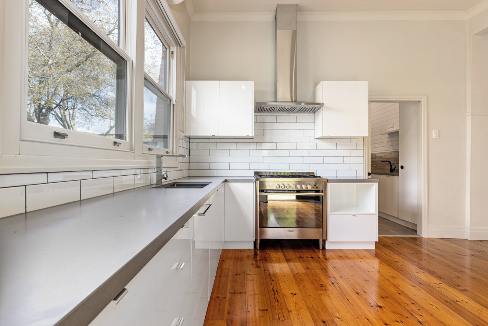 - Kitchen equipped with 900mm gas cooktop, oven and dishwasher