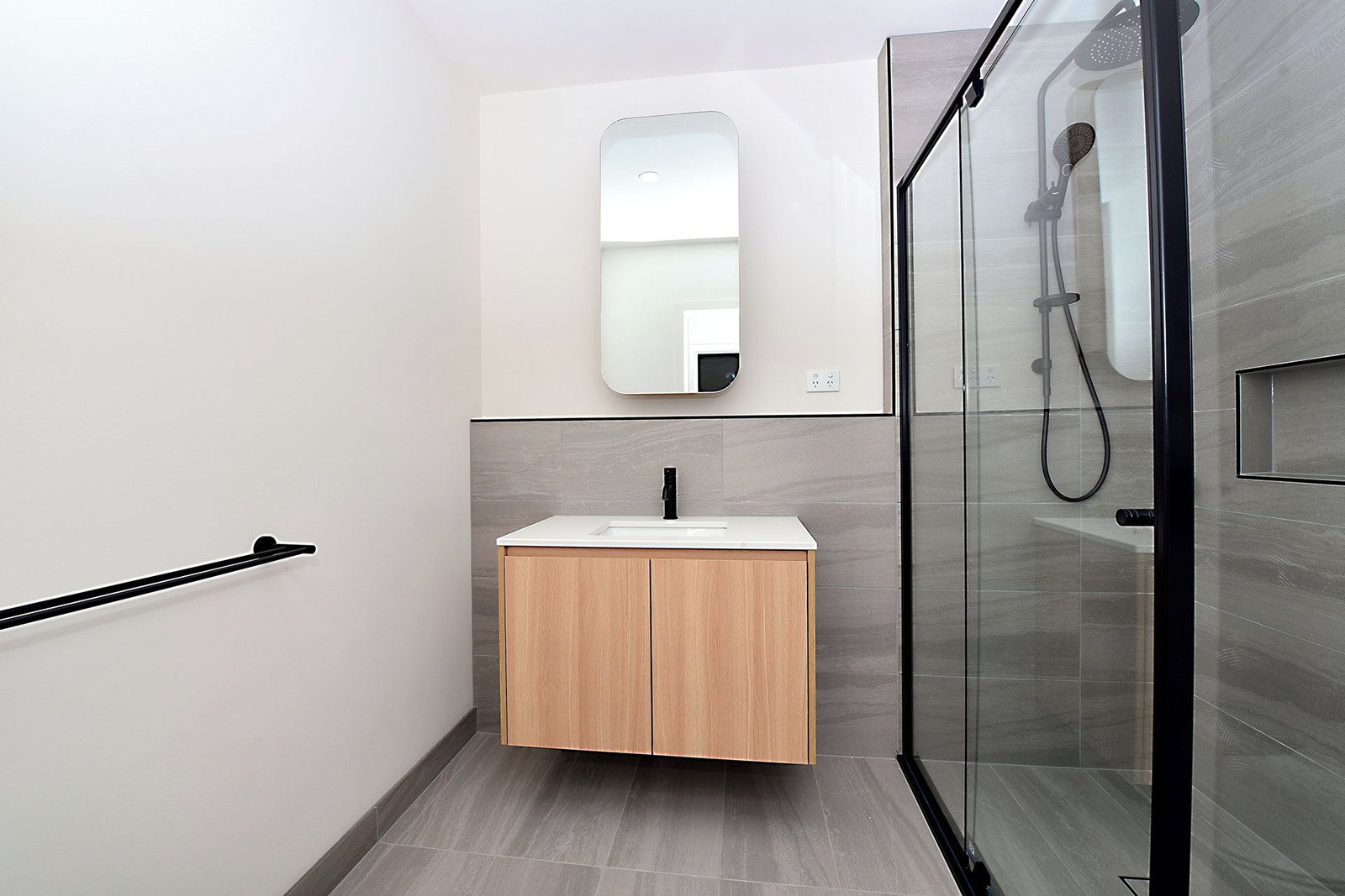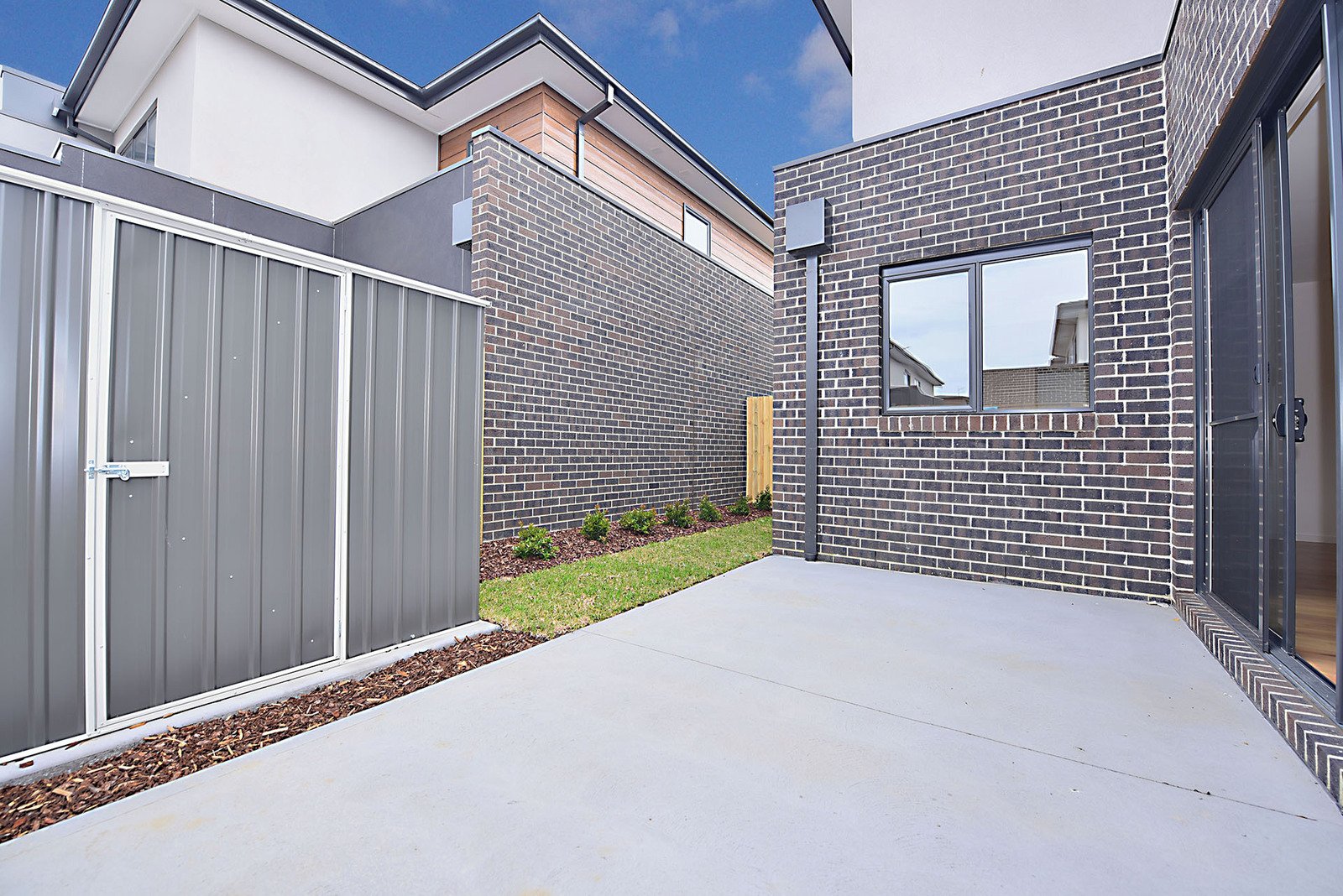 • Low-maintenance rear courtyard with storage shed