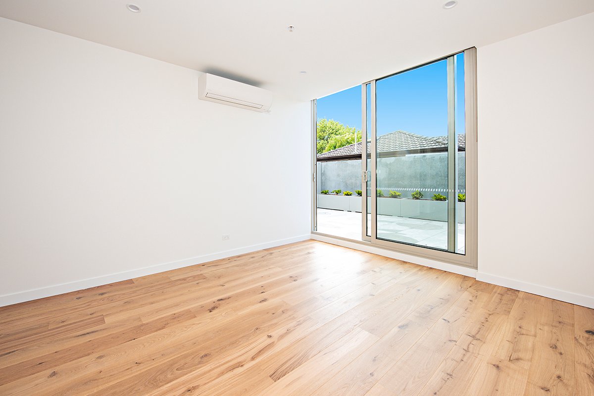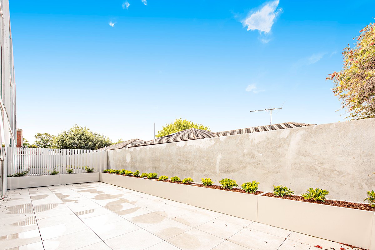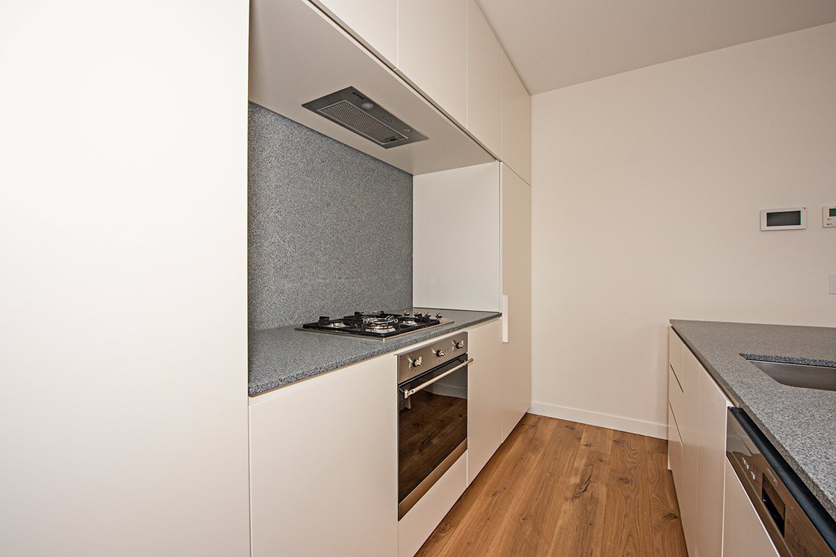 Filled with natural light, the home’s spacious interior comprises two bedrooms with built in robes, a modern master ensuite and a central main bathroom. Add to this an open plan living/dining area and an adjoining brand new exclusive kitchen featuring stone benchtops, an island bench, timber cabinetry, stainless steel cooking appliances, a dishwasher and a gas cooktop.