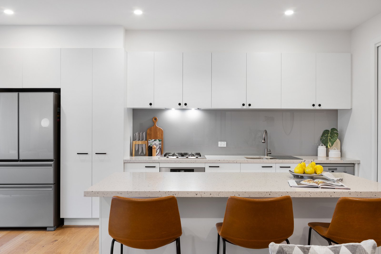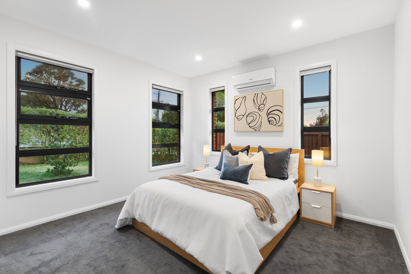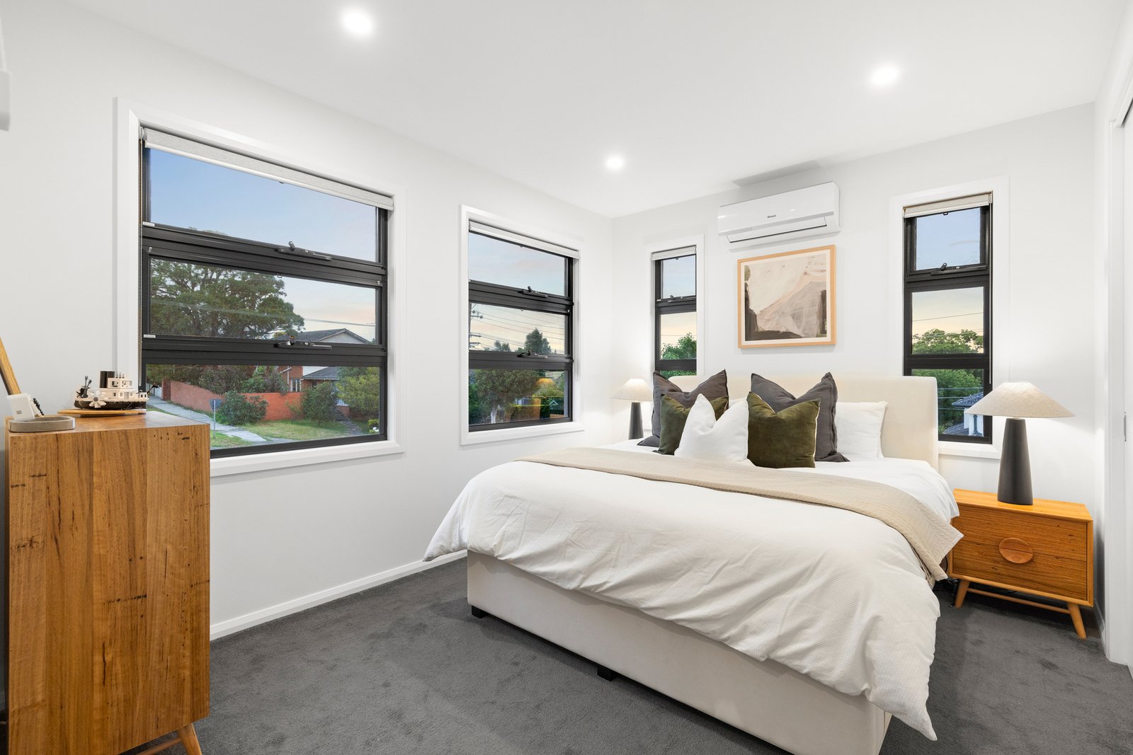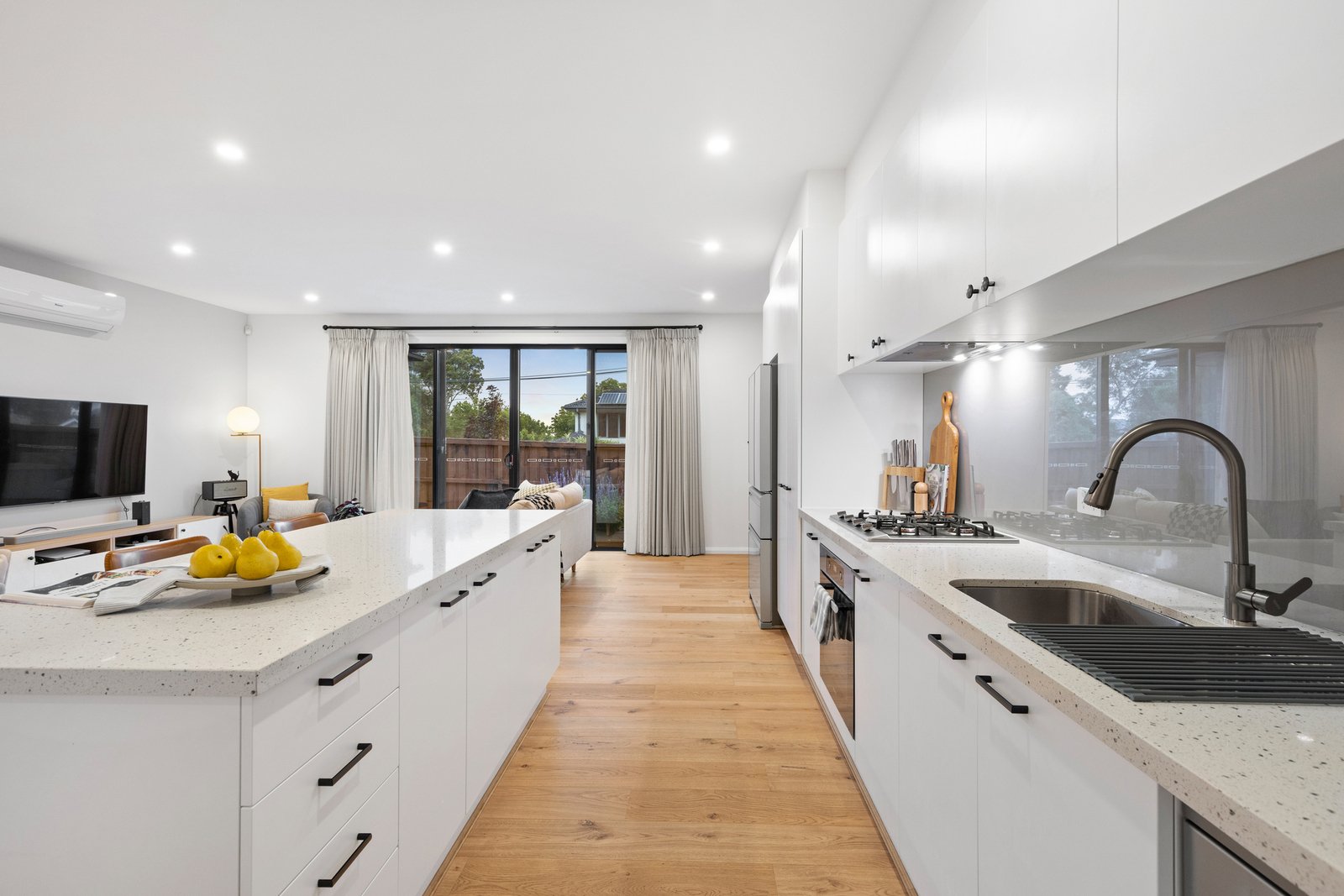 The expansive living and dining domain is enhanced by polished timber flooring and large picture windows that frame leafy outlooks and fill the home with natural light. At the heart of the home, the stylish kitchen is beautifully appointed with stainless-steel appliances and an elegant island bench, flowing seamlessly to a low-maintenance courtyard via sliding doors—perfect for relaxed outdoor enjoyment and easy entertaining.