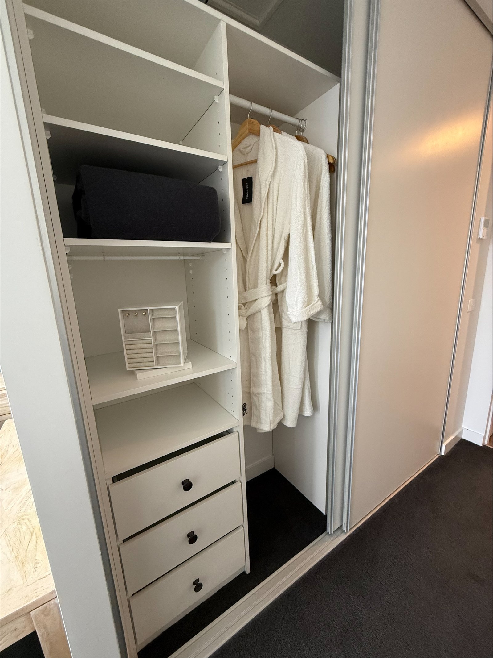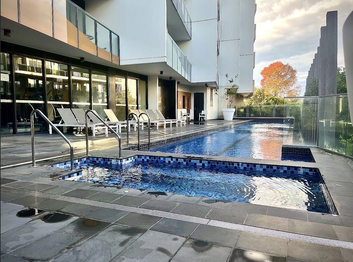 Looking outside from this spacious 4th floor open plan apartment, you will find floor-to-ceiling double glazed doors opening to an expansive balcony terrace overlooking the brilliant blue skies above, vibrant greenery from the oval and nearby heathland sanctuary, as well as the swimming pool below your feet.