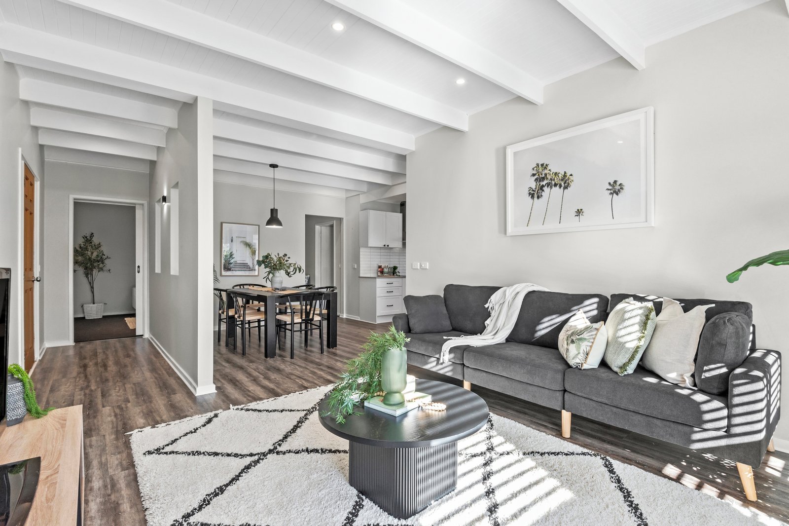 Set in a quiet tree-lined court, the home enjoys a peaceful setting. Stepping inside, a light filled living area showcases a neutral colour palette and modern flooring, creating an inviting atmosphere within. The open plan flows through to a well-appointed dining space and modern kitchen featuring stone benchtops, quality appliances including 600mm oven, electric cooktop, dishwasher, excellent storage and ample bench space. At the heart of the home, a second living area provides a cosy space to relax, retreat, or entertain.
