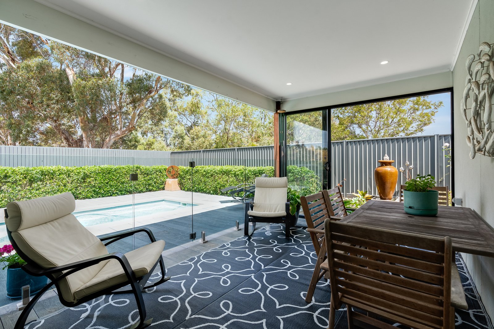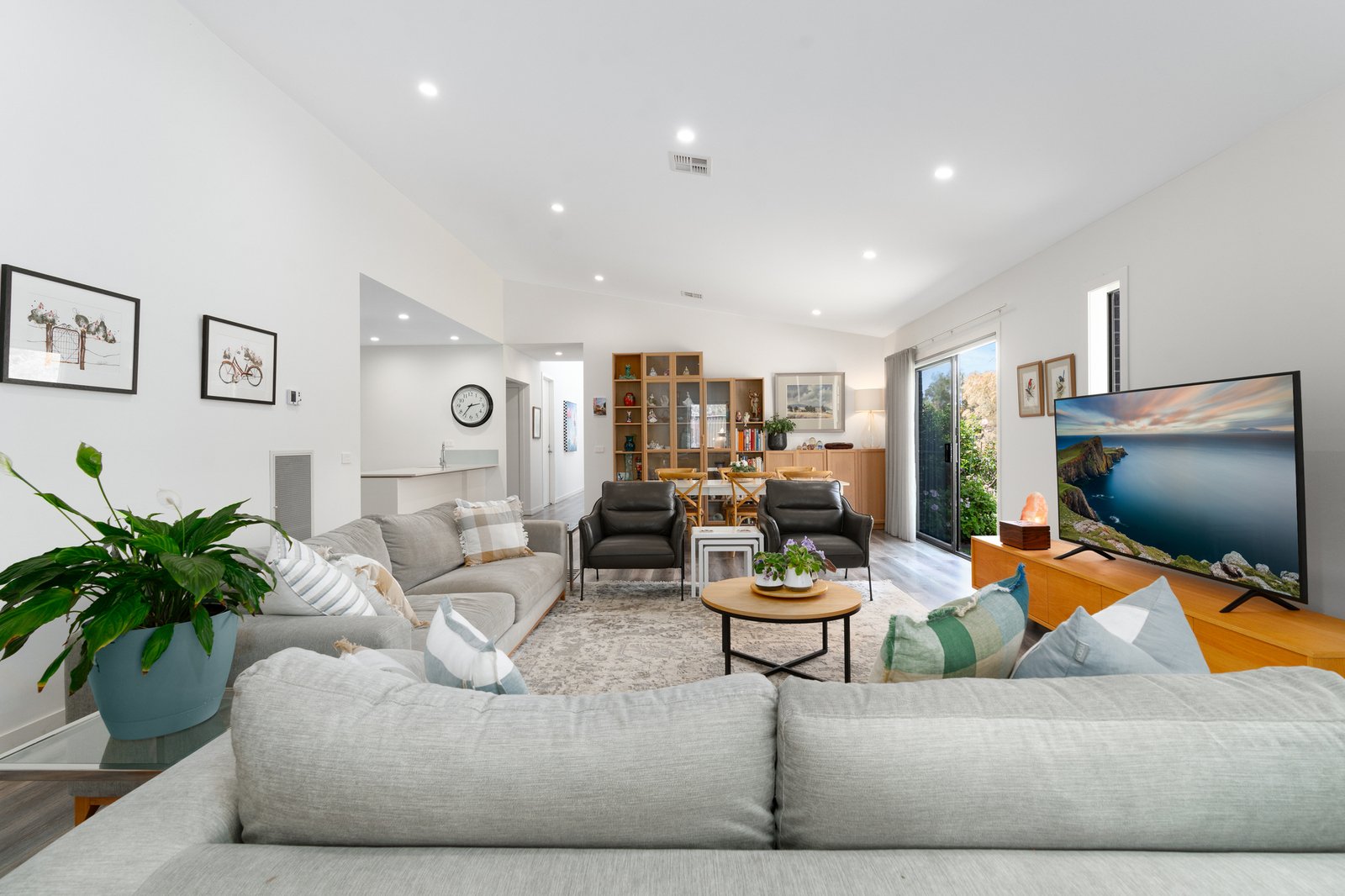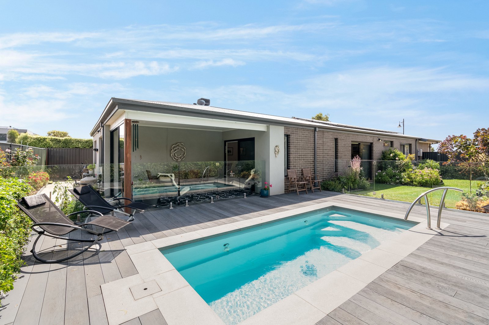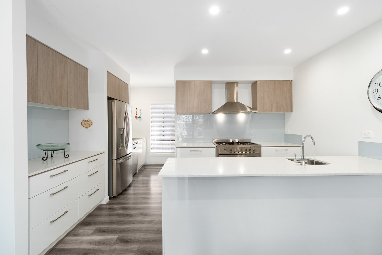 The heart of the home is a statement kitchen crafted for those who appreciate both style and substance. Finished with sleek stone benchtops, a walk-in pantry, soft-close cabinetry and a refined glass splashback, the space is complemented by premium stainless-steel appliances, including a 900mm freestanding oven, five-burner gas cooktop and rangehood. Designed to seamlessly connect indoor and outdoor living, the home opens to an enclosed undercover pergola overlooking a stunning heated swimming pool, framed by expansive timber decking — a private sanctuary perfectly suited to sophisticated entertaining or relaxed coastal living throughout every season.