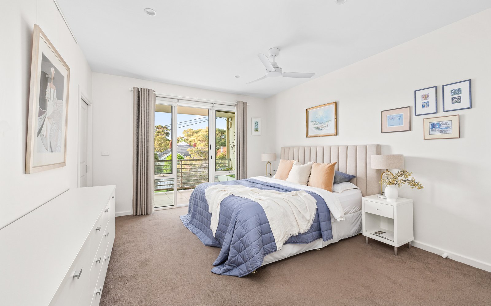 Cleverly accommodating with a prestige European appliance kitchen on the ground-floor, a kitchenette up above and two equally impressive bathrooms (one with a glass-topped dual vanity and ensuite access, the other with a spa), this cool coastal home features a gas-log fireplace, reverse-cycle air-conditioning and a clever rear access double auto-entry garage. Designed to catch the north sun, garden outlooks and a first-floor bay-view, this versatile home stands tall with lofty ceilings… and reaches out with wraparound balconies and terraces on two sides.