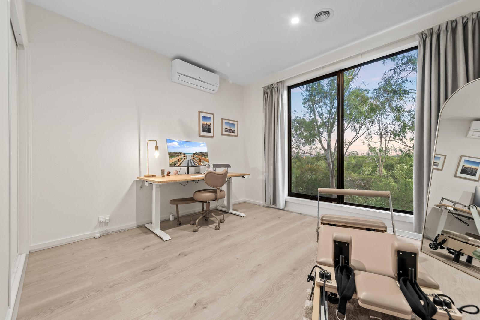 Upstairs, the master bedroom offers a peaceful retreat complete with a built in robe, private ensuite, and direct access to a balcony overlooking the greenery, ideal for relaxing. Three additional bedrooms, each with built in robes, are serviced by a central bathroom. The study nook provides the perfect spot for remote work or study.