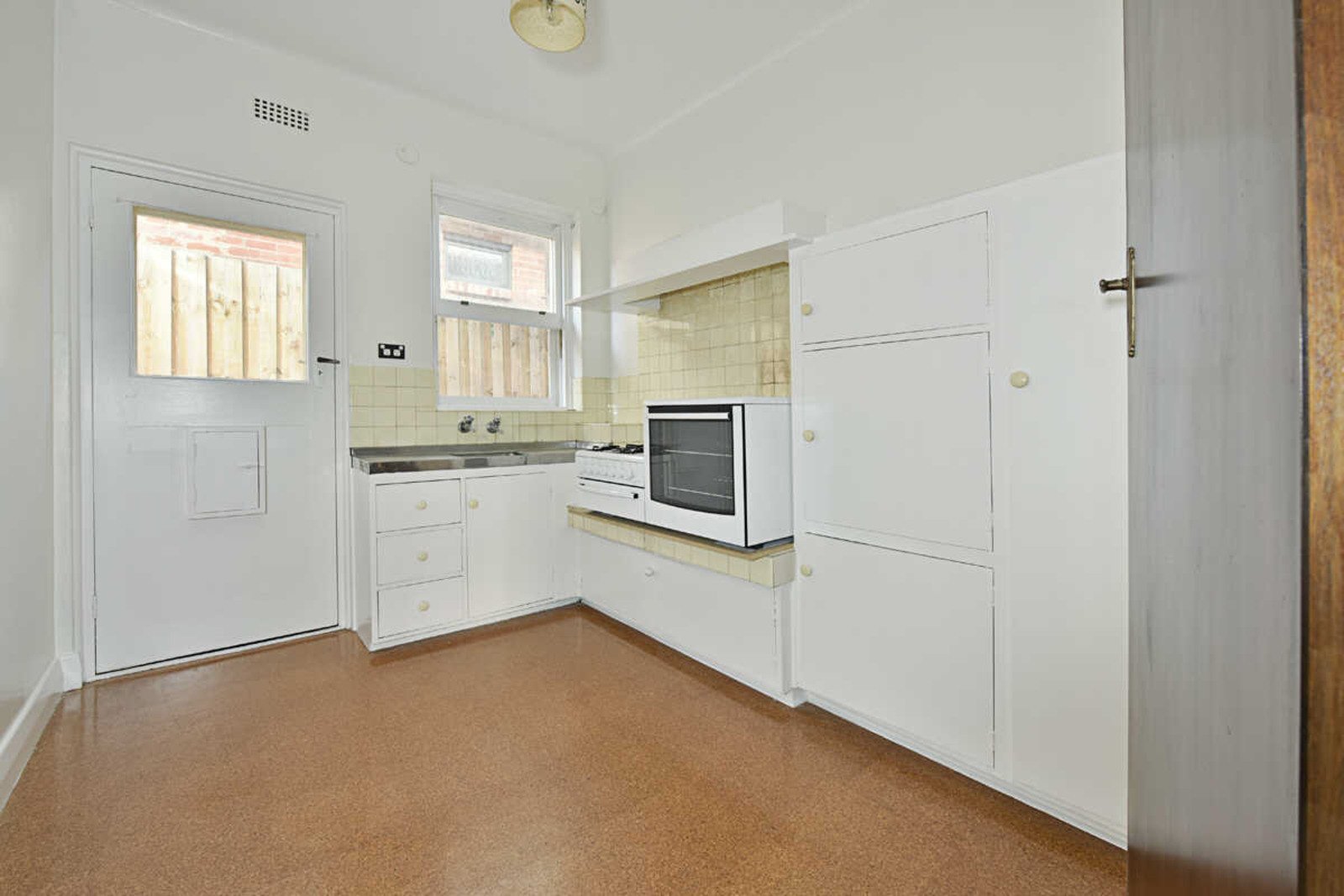 The well presented original interior comprises two generous bedrooms, no wardrobes so you will need to being your own, original central bathroom with a shower over the bath, an open lounge and dining area, split system heating and cooling and a functional separate kitchen in keeping with the Art Deco era is small but charming with a side by side oven with a gas cooktop.