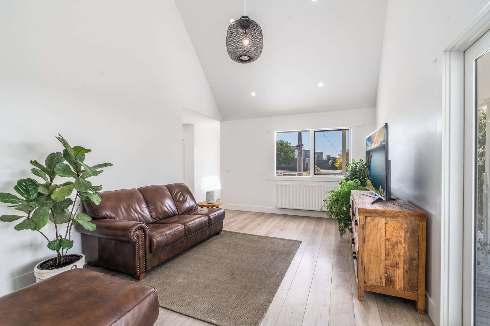 - Light-filled living room with split-system heating and cooling for year-round comfort