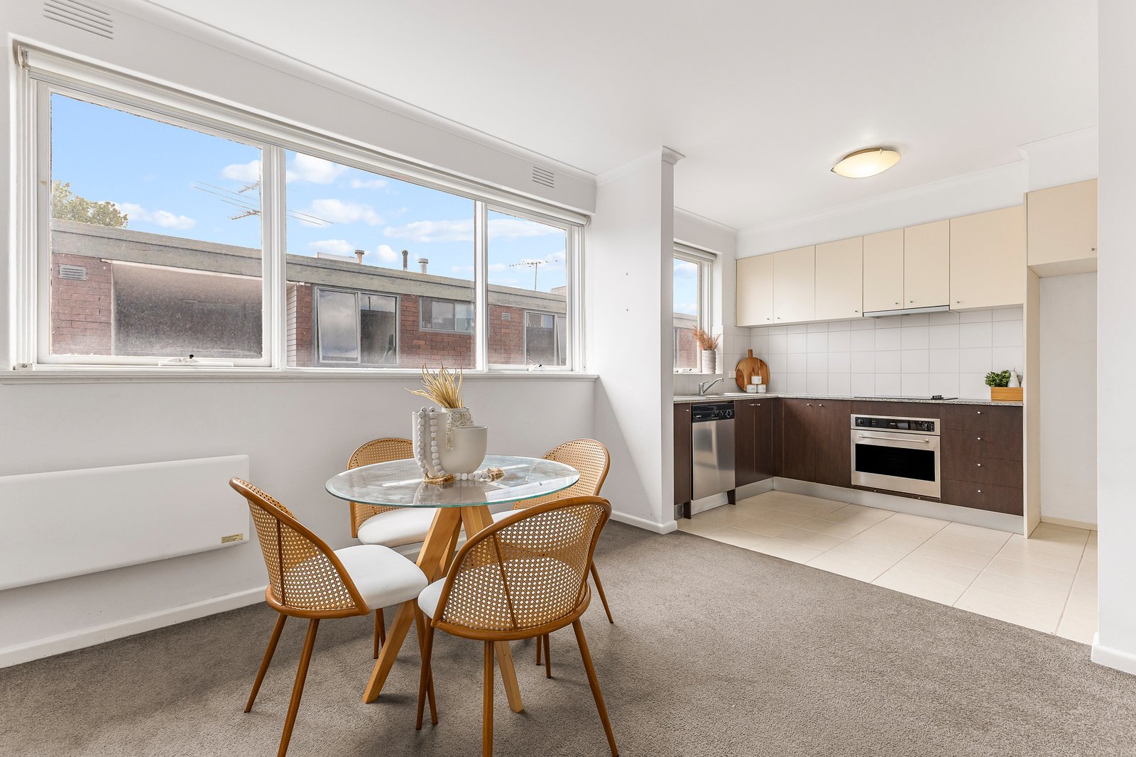 Crisp, modern and sun-filled, this spacious top-floor 1-bedroom security apartment offers a perfect starter home or investment. The north-facing bedroom (BIRs) is bathed in natural light, while the relaxed living and dining area flows seamlessly from a stylish granite kitchen with stainless steel appliances. A smart bathroom, European laundry, ample storage, and panel heating add convenience and comfort, while secure auto gate parking completes the package.