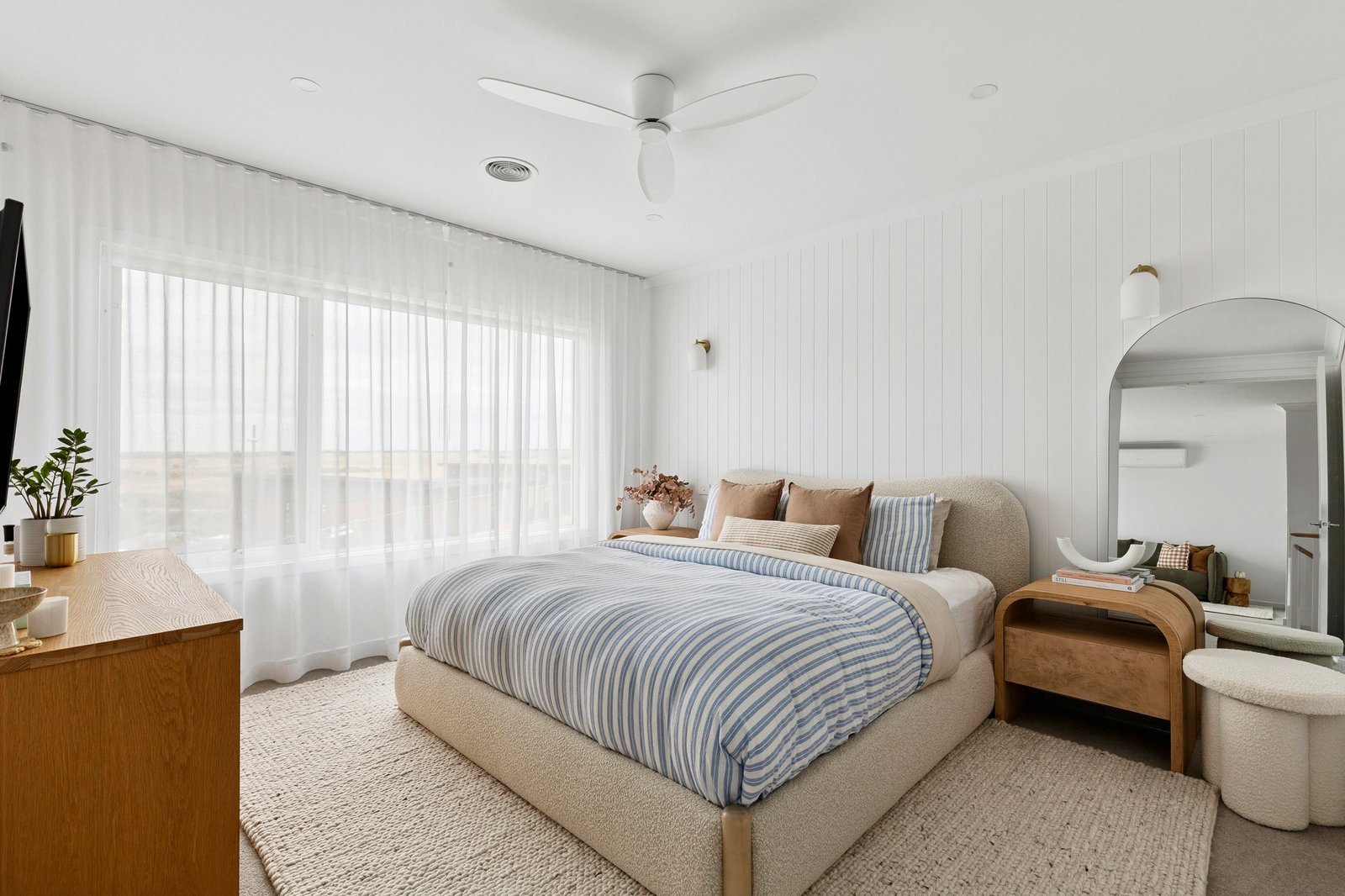 An adjoining second living area provides the perfect space for the kids to play whilst remaining connected the main hub of the home. A fully fitted study nook with built-in workstations and storage is perfect for working from home. The third living zone upstairs escapes the hustle and bustle of the main living, with direct balcony access and uninterrupted views, offering a quiet space to retreat and take in the magnificent scenery.