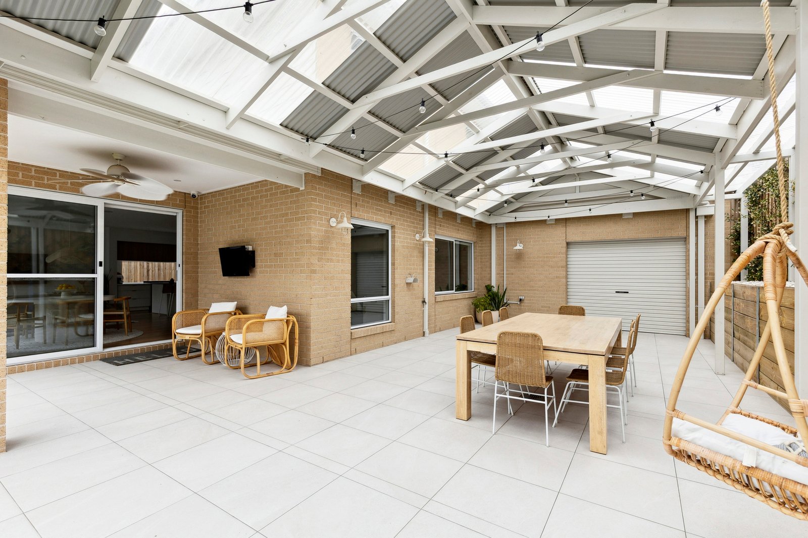 Outside, the expansive undercover alfresco provides an impressive space for entertaining, complete with Ziptrak blinds for shade and shelter, tv connection, ceiling fan, and ambient sconce lighting. The rear yard provides a secure lawn area for the kids to play, with lush bordering hedges and established gardens maintained by an automated irrigation system. The three-car garage includes direct internal entry, plus rear roller door access to the alfresco, and a garden shed at the rear facilitates excellent outdoor storage.