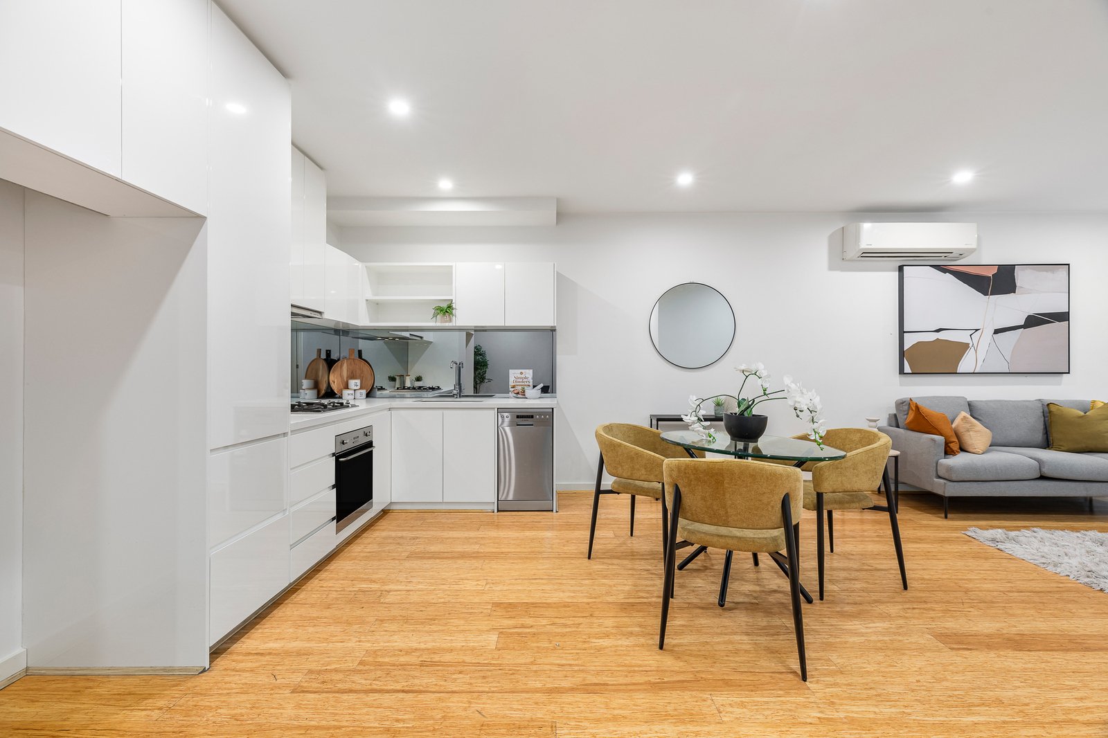 Quietly set behind a vine-covered exposed brick entrance, within a contemporary boutique complex, this stylish ground-floor apartment is a fitting extension of the building’s architectural flair, showcasing refined finishes and thoughtful proportions, in a premier location.