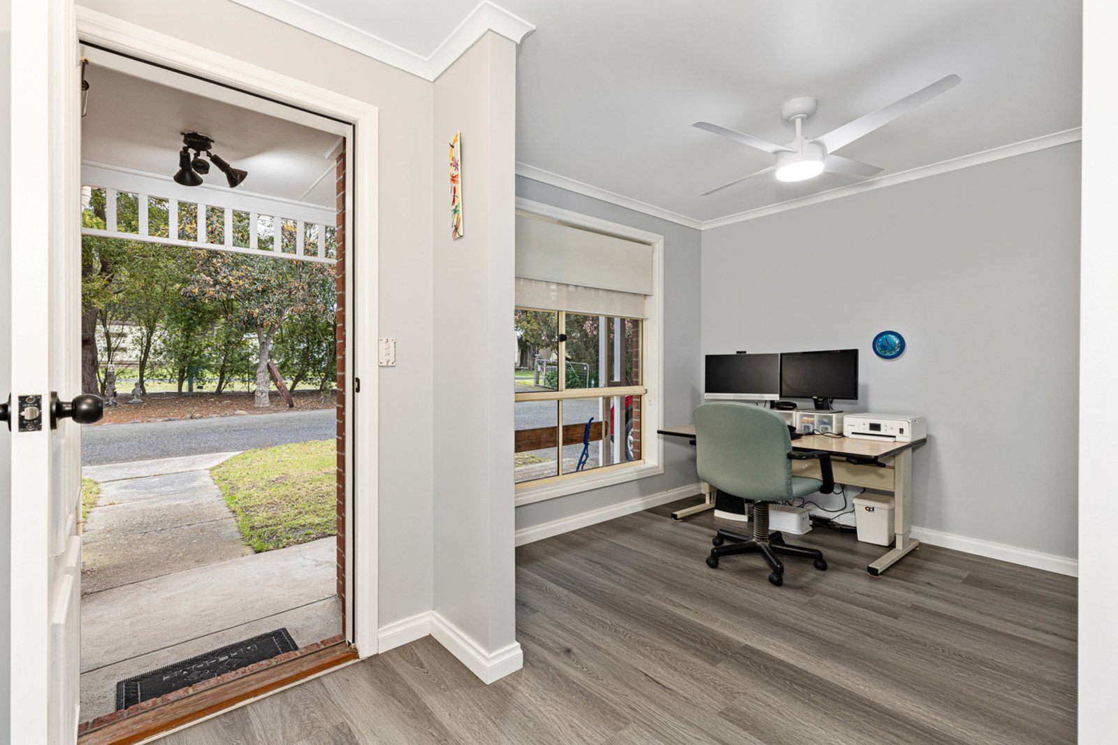 Accommodation includes three well-sized bedrooms plus a separate study, providing flexibility for families, guests or those working from home. The master bedroom is complemented by its own ensuite, while the remaining bedrooms are serviced by a central bathroom, all presented in neat and comfortable condition.
