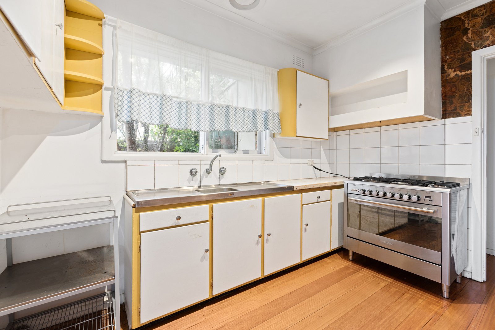 The existing home is a spacious and secure three-bedroom, one-bathroom brick residence that retains much of its original charm and character. Timber floorboards run throughout, and the floorplan is practical and well-proportioned, offering comfortable living spaces and excellent natural light. Two of the bedrooms include built-in robes, while the main bathroom remains in semi-original condition, featuring a walk-in shower, separate bath and single vanity.