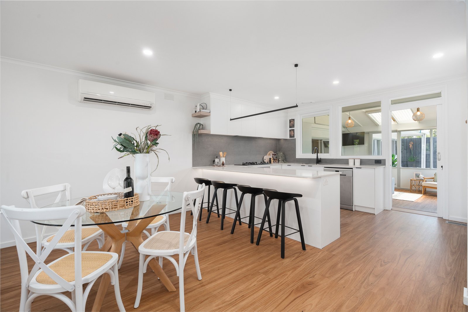Nestled in a quiet court setting, this 4 bedroom, 2 bathroom home offers beautifully updated living for the modern family. Step inside to discover a stylish interior infused with contemporary charm and impressive with its three separate living zones. Light-filled open-plan living is complemented by a stunning kitchen, fitted with stone surfaces, sleek cabinetry and stainless steel appliances. The second casual family room flows onto an entertaining deck and sunny north-facing backyard, while a third retreat offers that coveted family flexibility. Accommodation is plentiful with four bedrooms and two bathrooms. The master bedroom enjoys a custom walk-in robe and access to the sublime main bathroom, fitted with a floating vanity, LED lighting, a luxurious bath and rain shower. The three remaining bedrooms feature robes, while an additional bathroom provides comfort and convenience. Highlights include ducted heating and split systems, ceiling fans, an internal-access garage, carport and secure dual driveway parking to store the boat, caravan or trailer. Perfectly positioned within walking distance of the local shopping strip, bus stops and Seaford Hotel, St Anne's, and Belvedere Park Primary Schools. Within minutes you'll find glorious Seaford Beach, the train station, waterfront eateries and freeways.