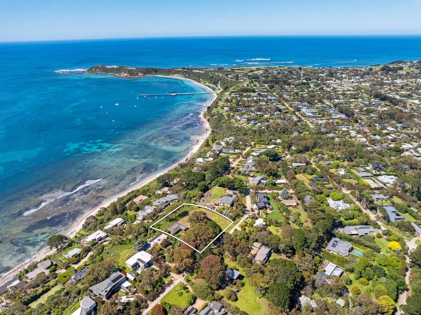 Claiming its place within one of Flinders’ most coveted waterside enclaves, this extraordinary holding sprawls across two titles and just over an acre, placing it firmly within the Peninsula’s upper echelon and offering scope to craft a landmark coastal residence (STCA). One street back from the ocean and sheltered from passing traffic, the clifftop property enjoys an uninterrupted 180-degree panorama that captures the beauty of Flinders Jetty, the rugged tip of the coast and the open ocean beyond.