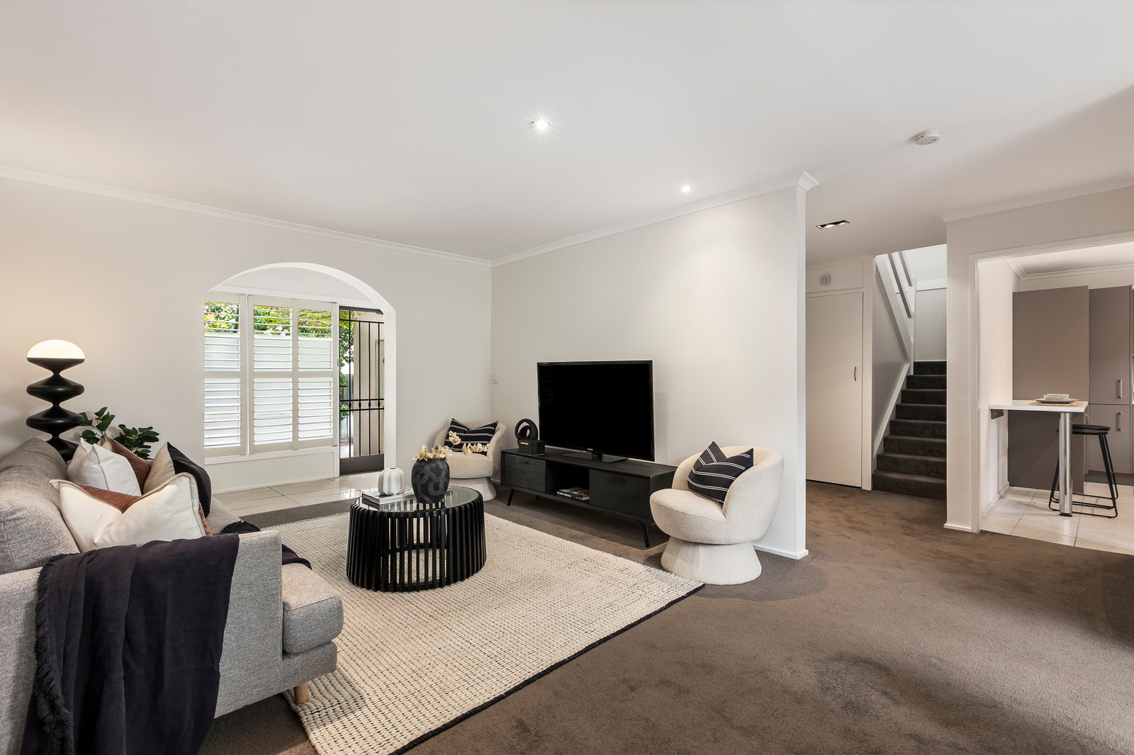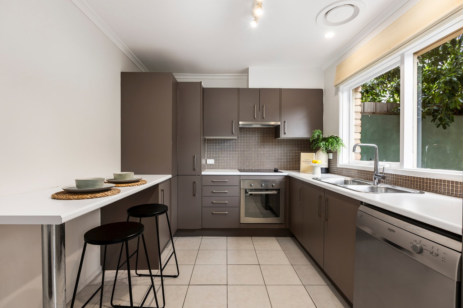 Set within a timeless group of just five and complete with its own remote double garage, the home unfolds across two beautifully proportioned, light-filled levels. The ground floor introduces an inviting living and dining domain that flows seamlessly to an entertaining deck, complemented by a well-appointed kitchen featuring stainless steel appliances including a dishwasher, mosaic splashback, café-style breakfast bar and a large adjoining laundry with courtyard access.