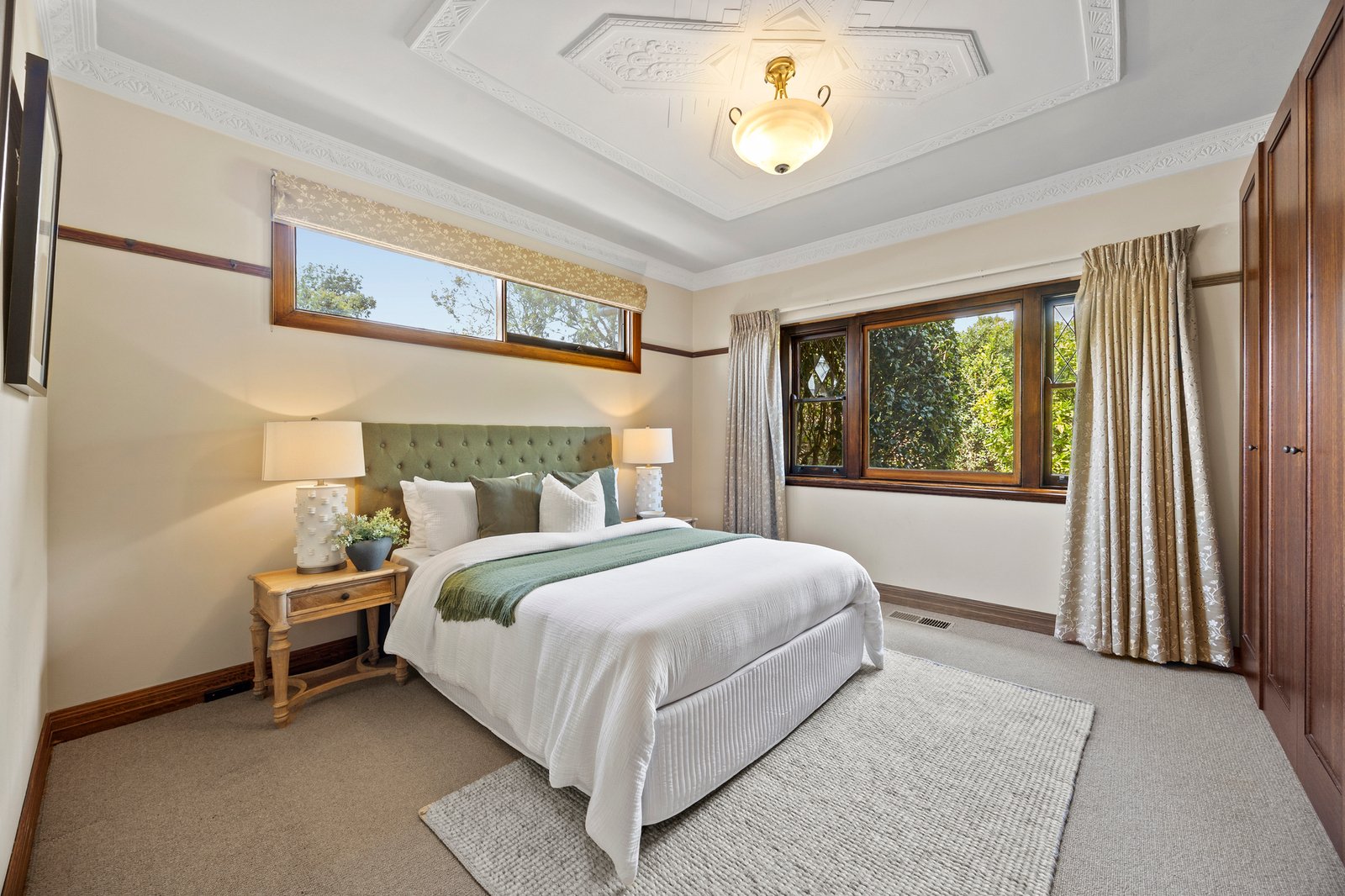 Beautifully preserved interiors showcase lofty decorative ceilings, refined cornices and roses, stained timber architraves, hardwood floors and original light fittings, creating an atmosphere of enduring grace.
