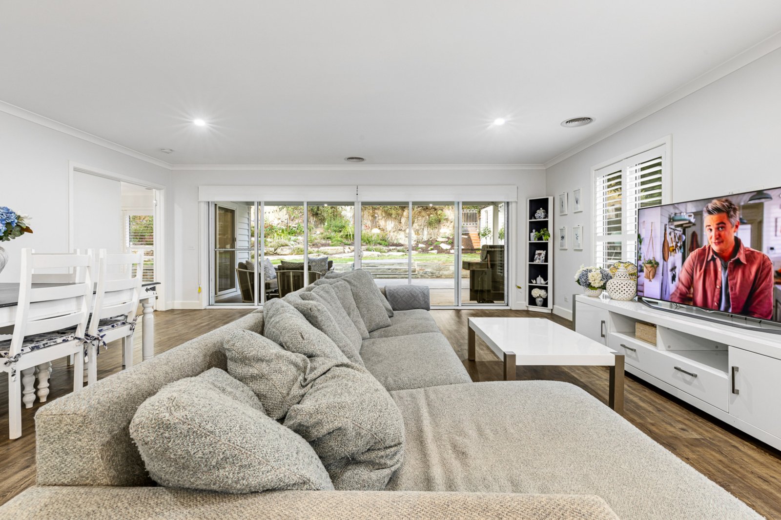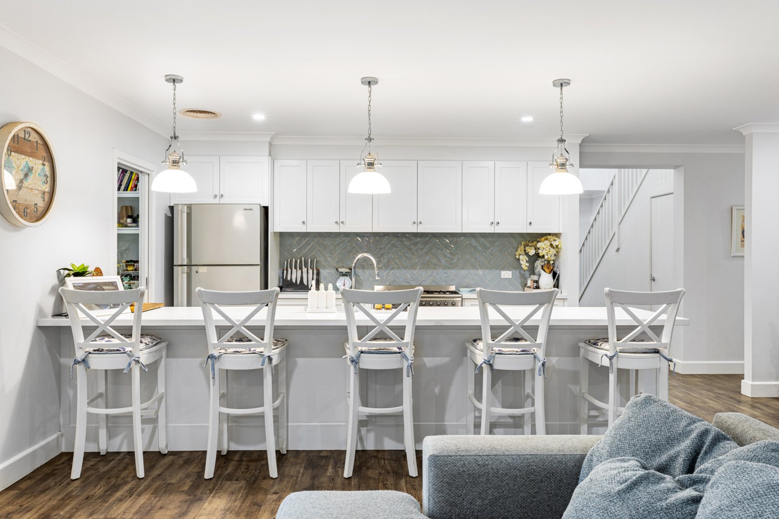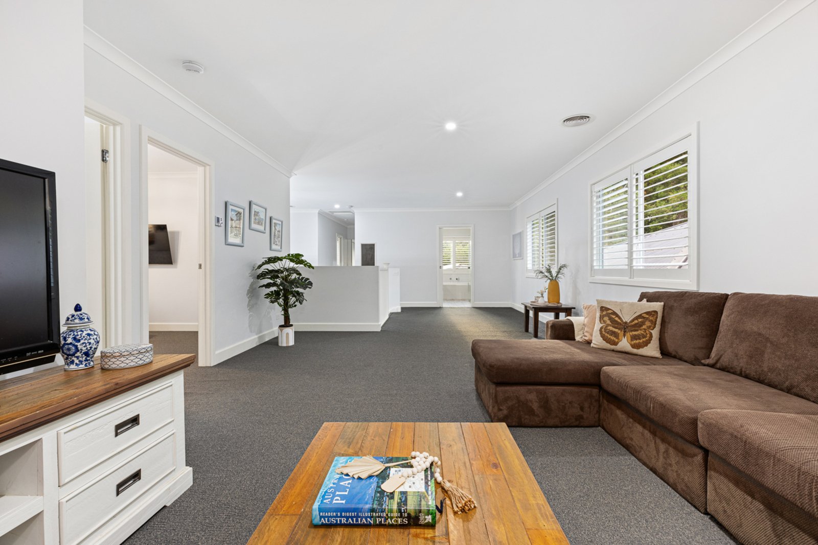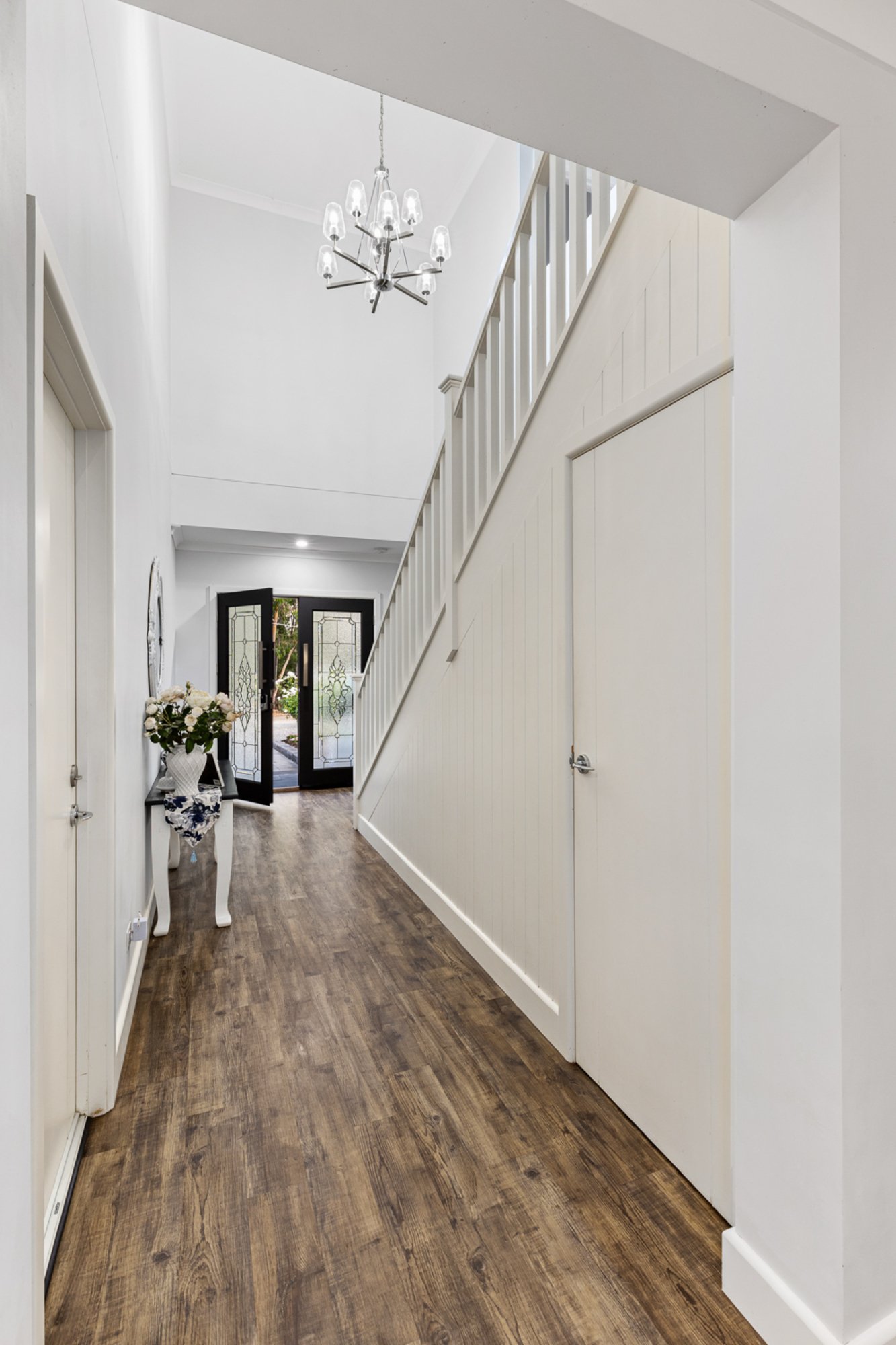 Designed for flexibility and comfort, the home boasts three separate living zones, ideal for families of all sizes. Plantation shutters throughout enhance the classic Hamptons aesthetic, while ducted heating and cooling ensure year-round comfort.