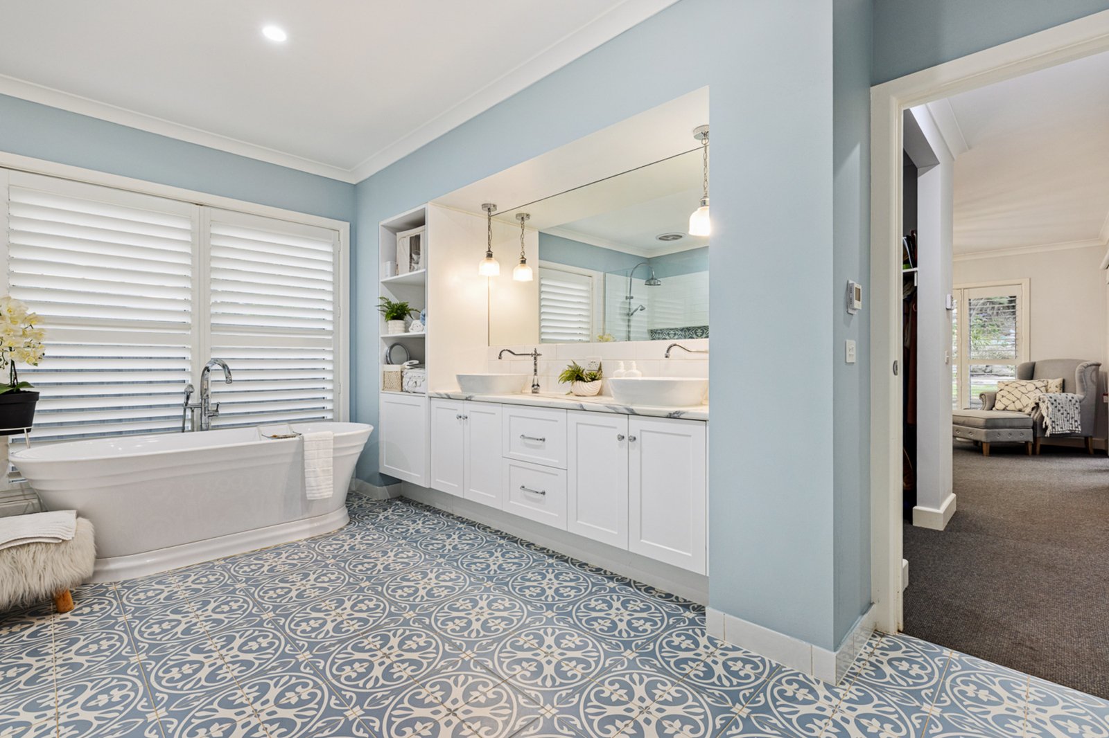 The home offers four spacious bedrooms, including a luxurious primary suite complete with a walk-in robe and an oversized ensuite featuring a statement claw-foot bath. The remaining three bedrooms all include their own walk-in robes, providing outstanding storage throughout.