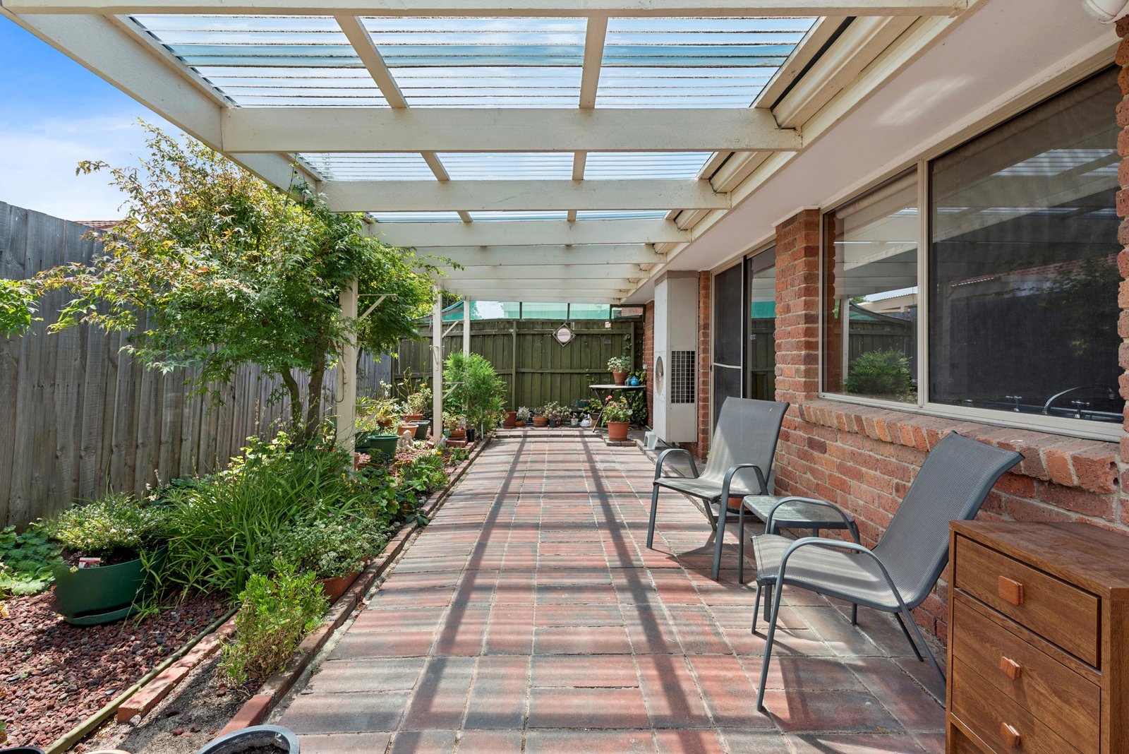 The villa offers an approximate unit size of 12 squares (112m2) and includes a low-maintenance paved courtyard with covered entertaining area, outdoor storage, and a single garage. Well positioned within the village, it also provides rear access to a nearby bus stop.