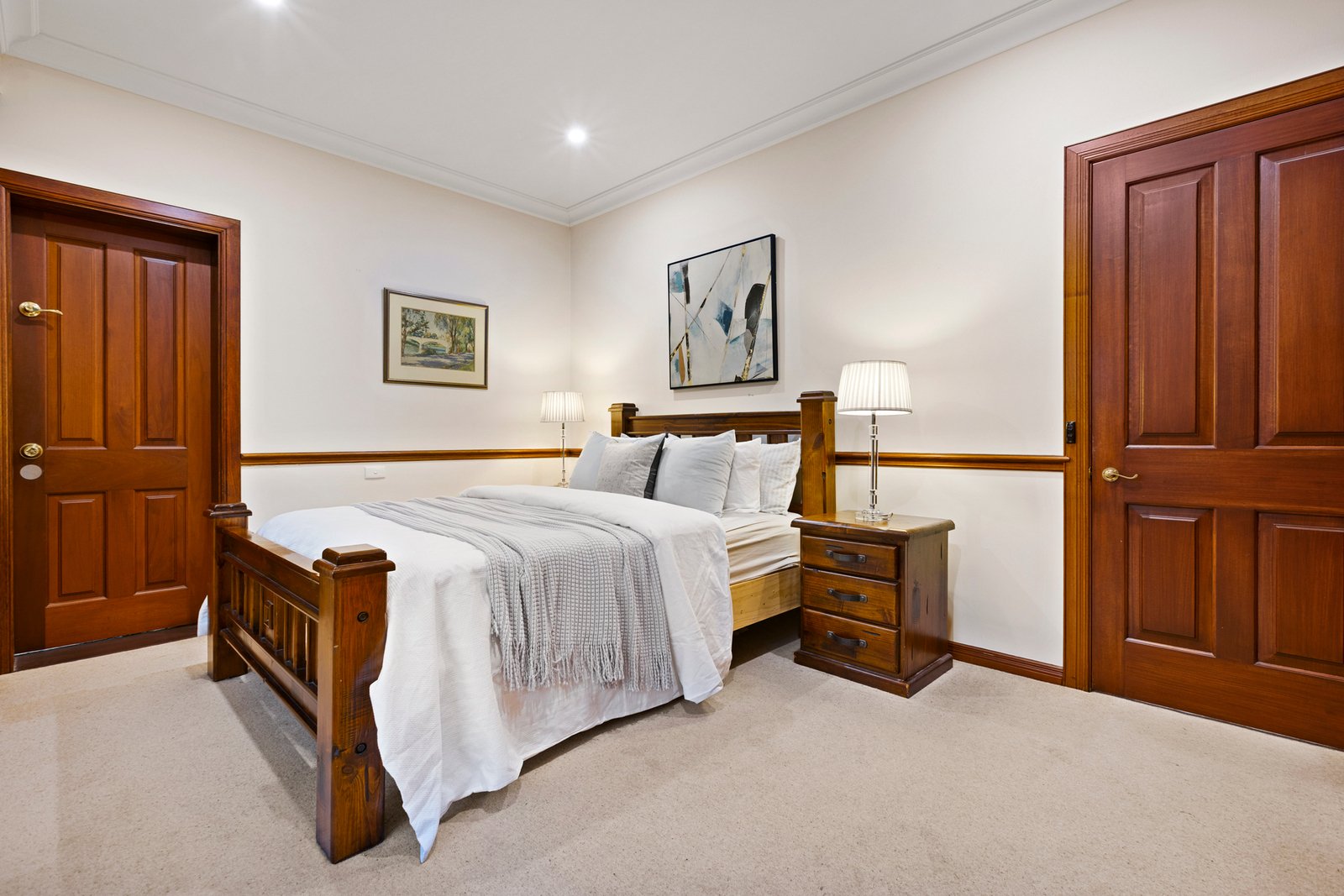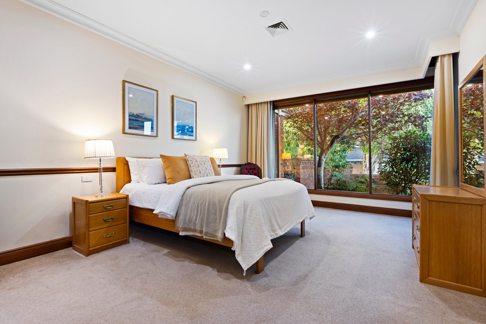 Accommodation is generous, comprising four oversized bedrooms. The impressive master suite features a walk-in robe, dressing room and a spacious ensuite, while a second bedroom includes its own ensuite and private sauna. A beautifully renovated central bathroom services the remaining bedrooms.