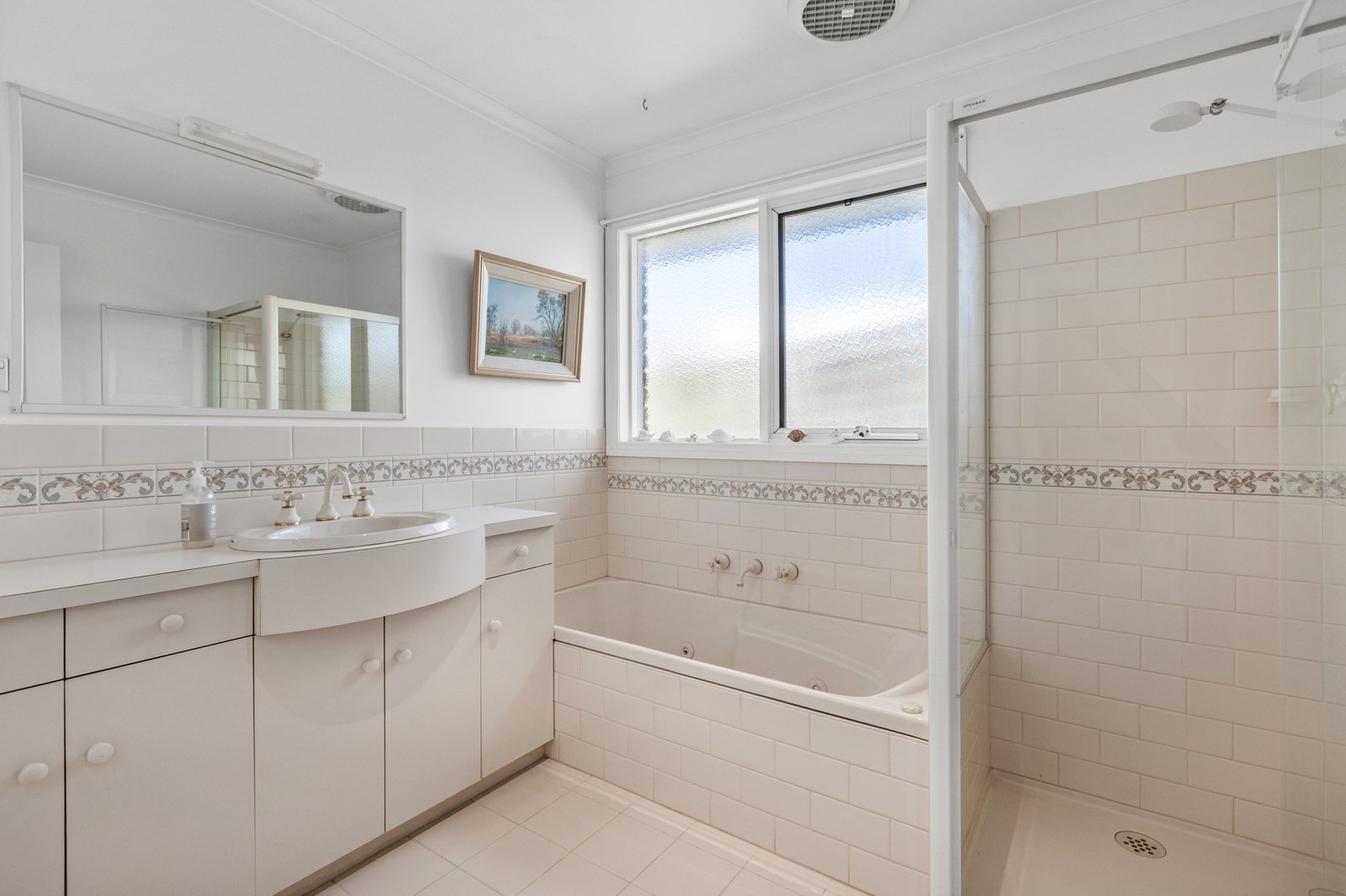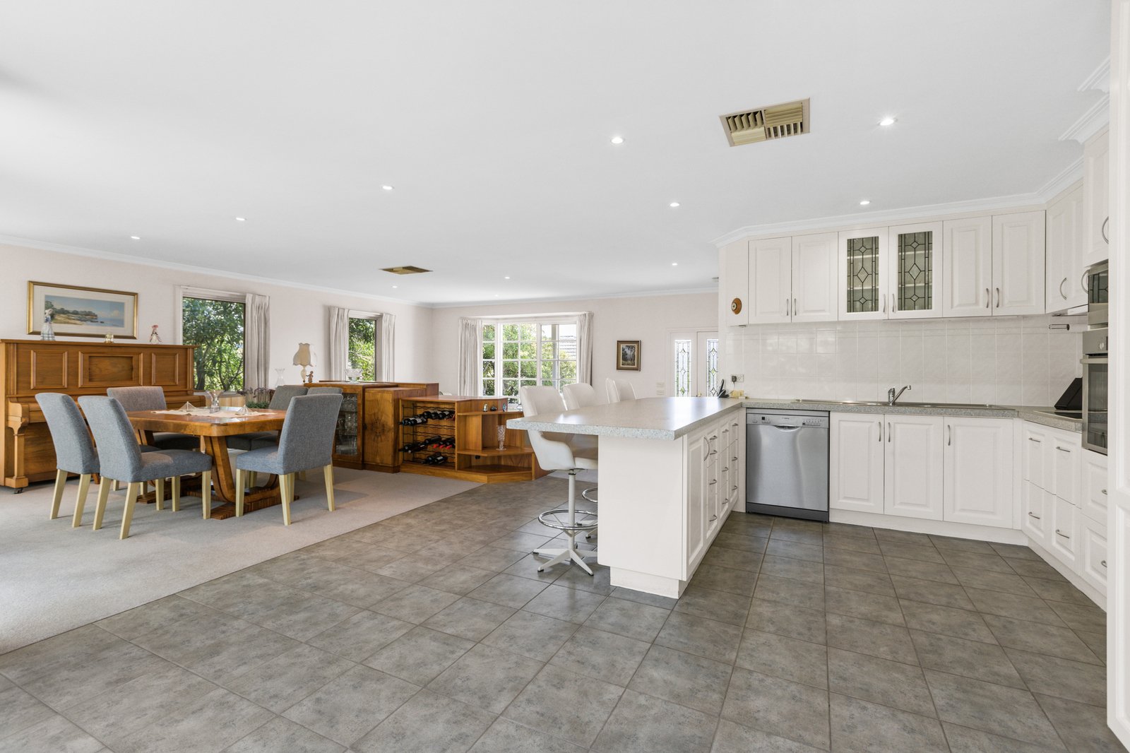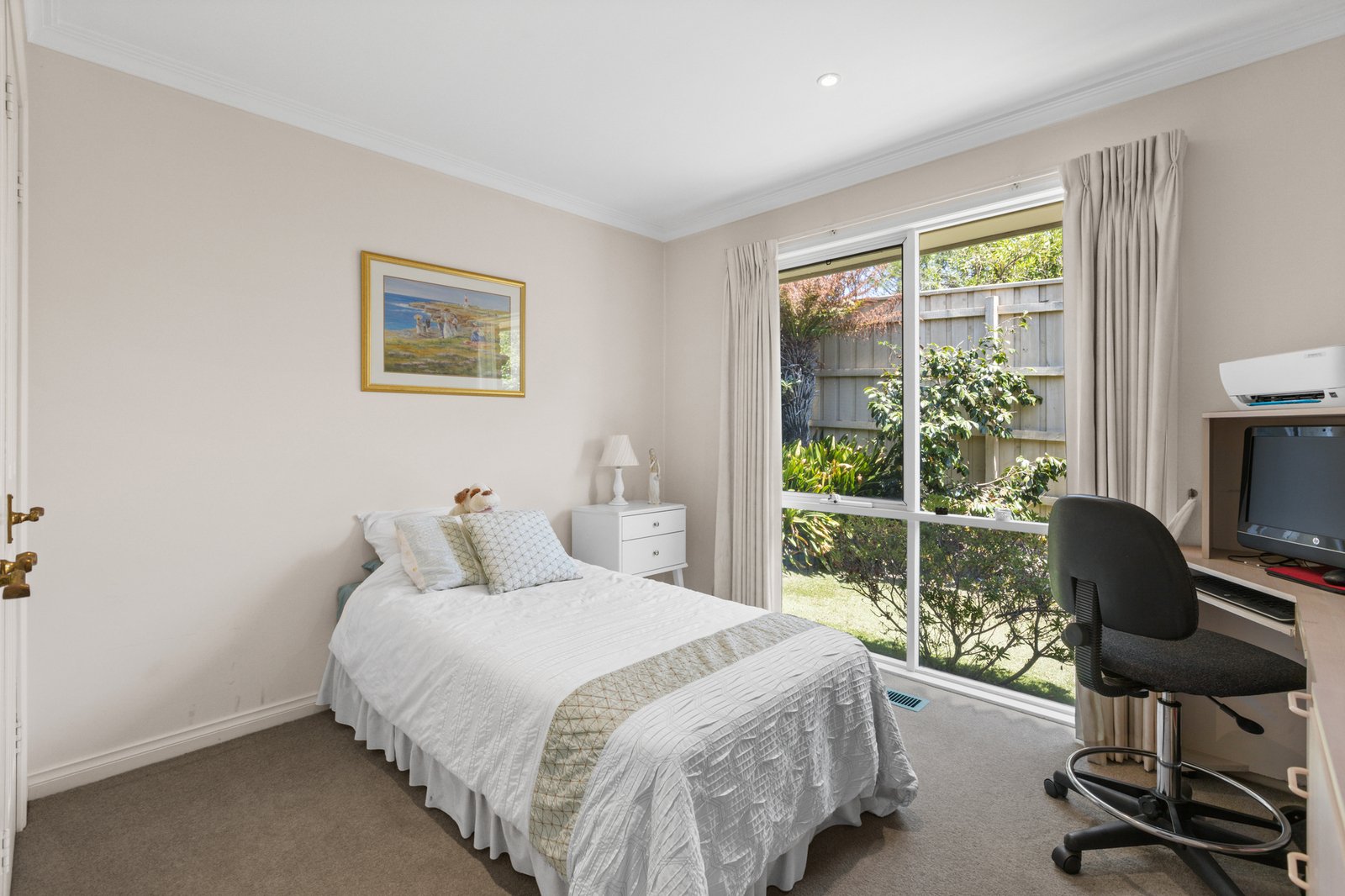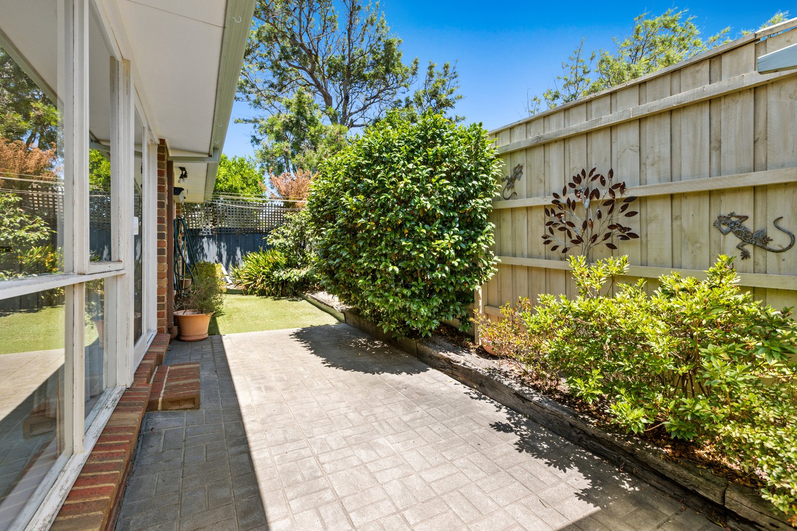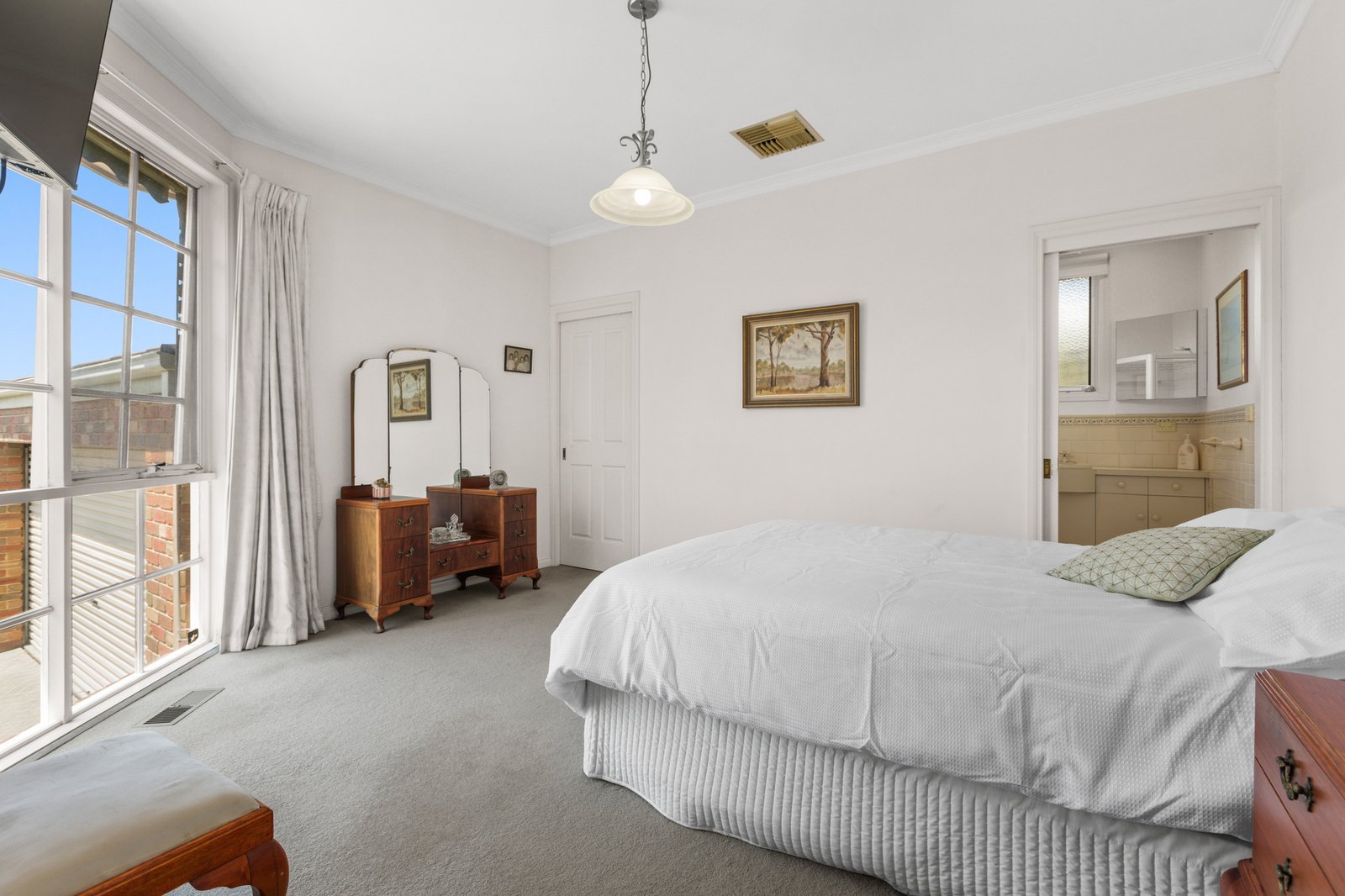 Classically styled with timeless bathrooms (one a huge ensuite, the other a main spa-bathroom), this centrally heated and cooled home is ready for relaxing. Optioned up with a handy separate WC, there’s custom joinery defining the split-levels, and excellent storage including a walk-in and built-in robe.
