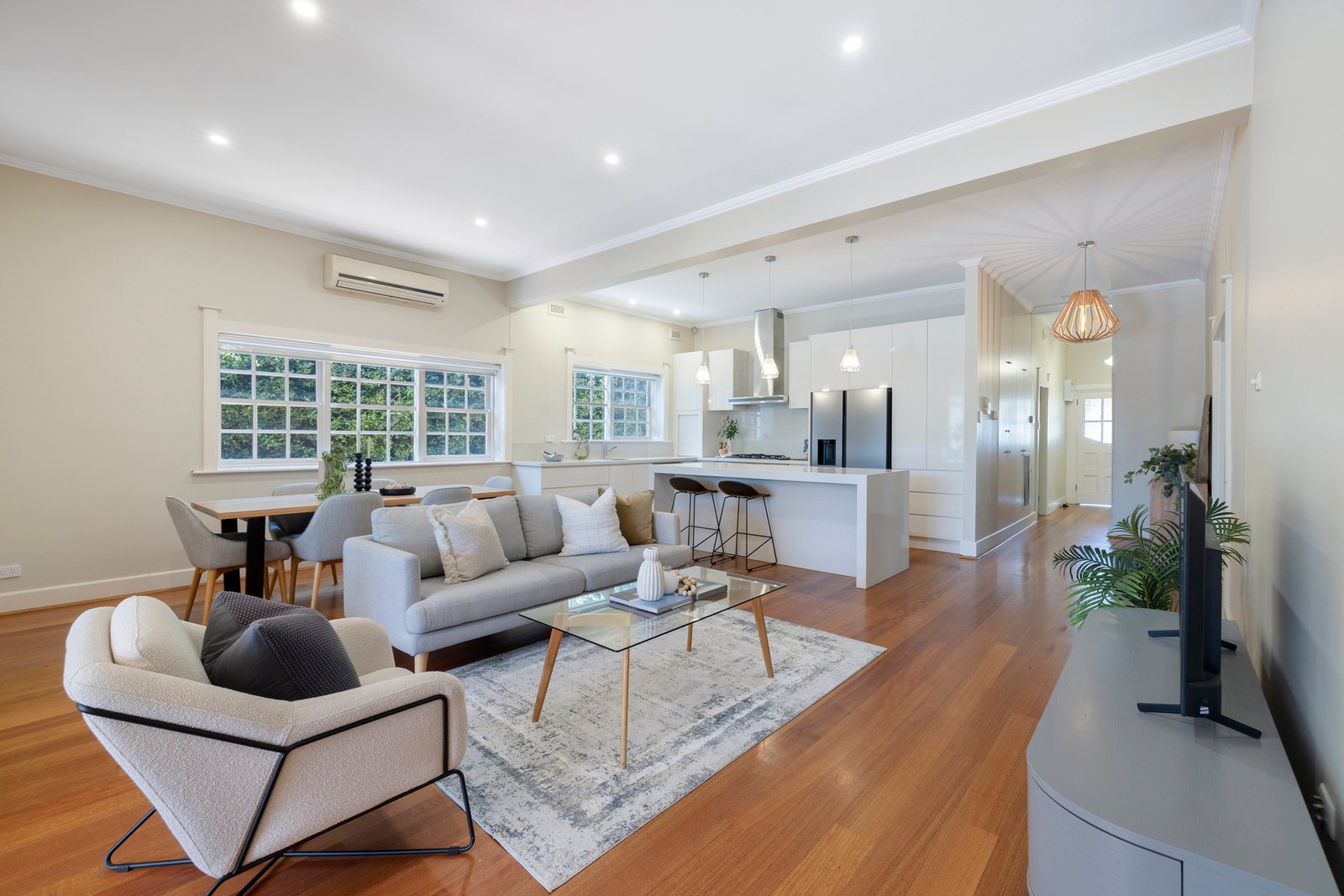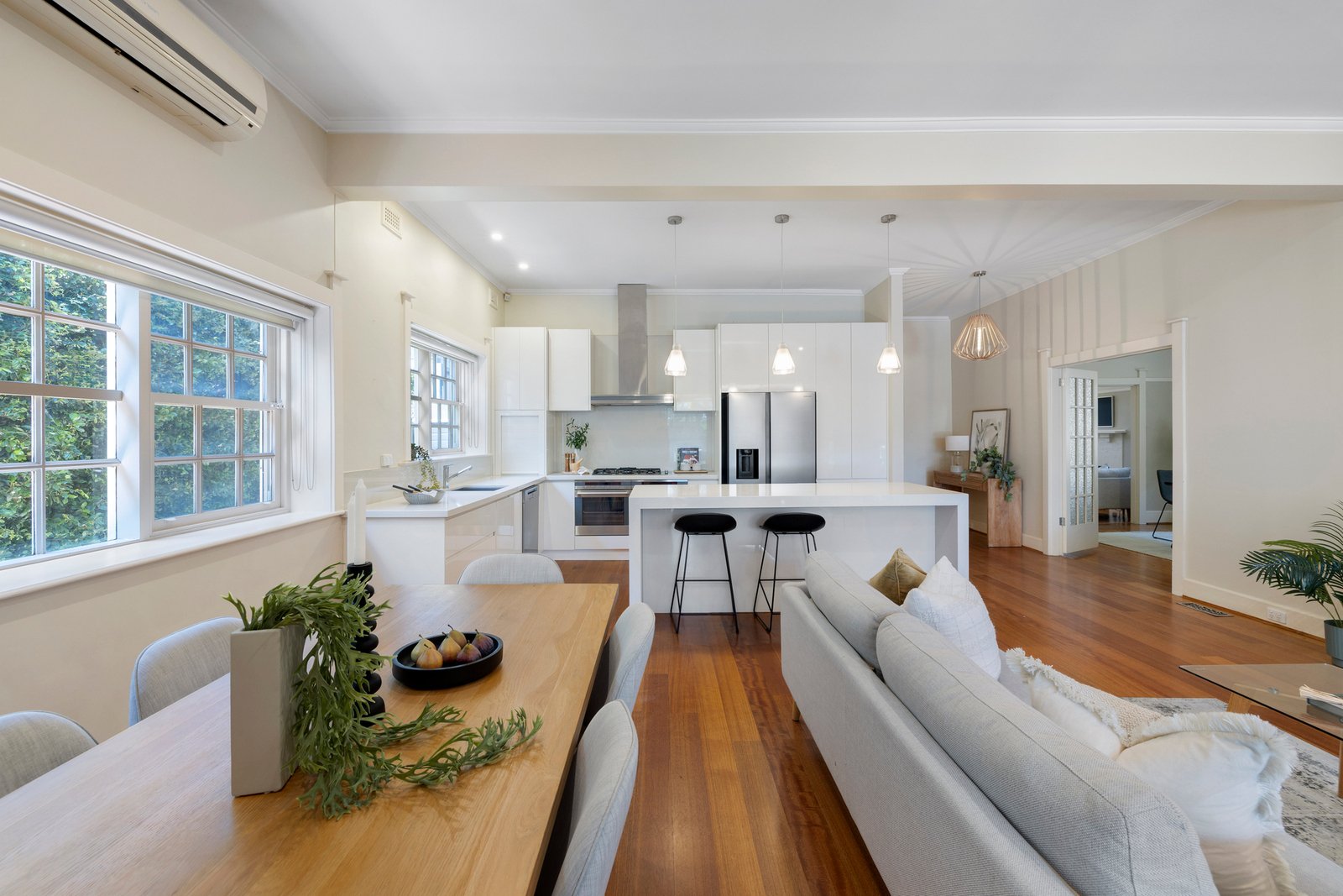 With a chef’s kitchen (with dual ovens, Miele dishwasher and stone-wrapped dining bench) at the heart of it all, this Californian entertainer provides a choice of feature-fireplace to enjoy quietly in the formal lounge... or to live loud in the fan-cooled al fresco area. Promising a harmonious life with a gracious master-suite facing front gardens and kids’ bedrooms around a designer bathroom (with freestanding bath and separate WC) in a rear wing, this substantial period home even offers modern work/life balance with a separate-entry home-office (or bonus bedroom) in a poolside studio.