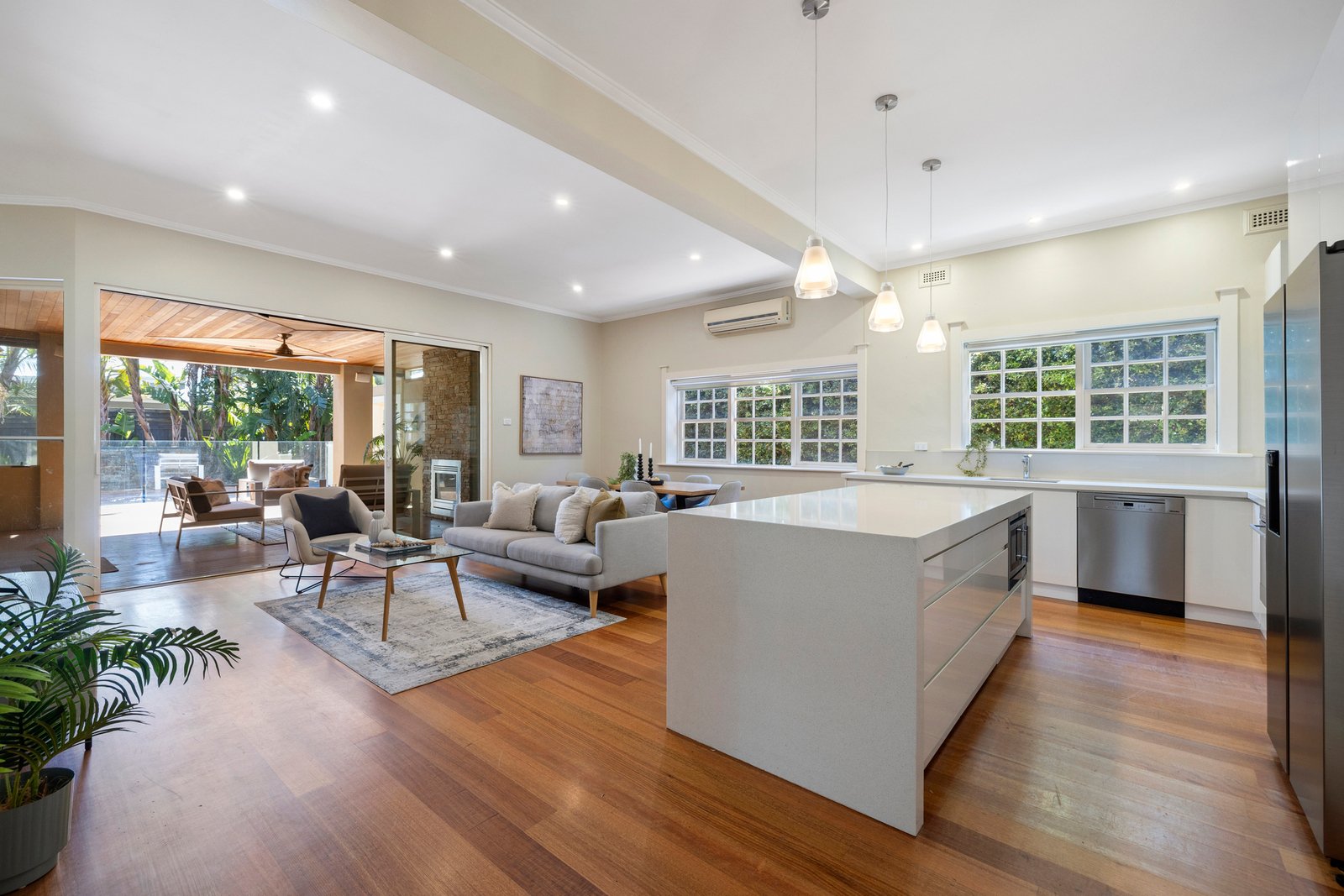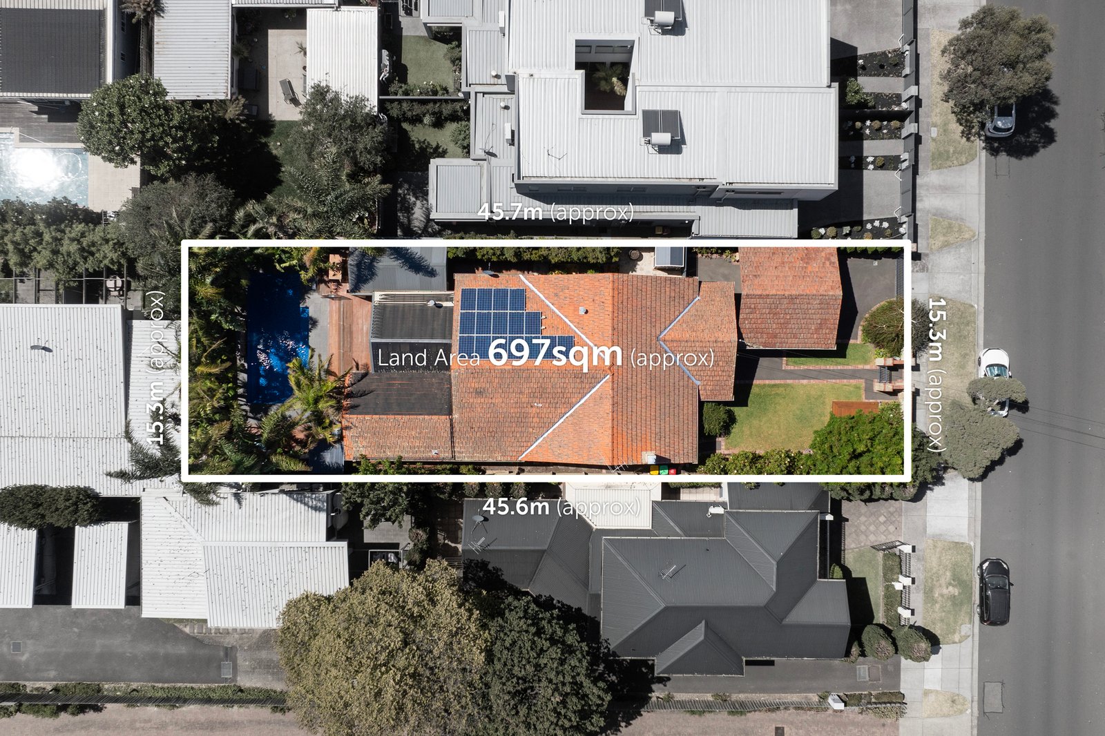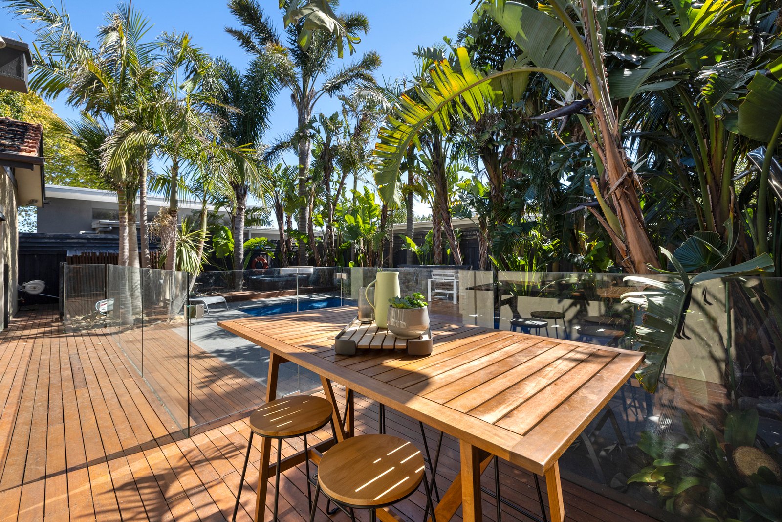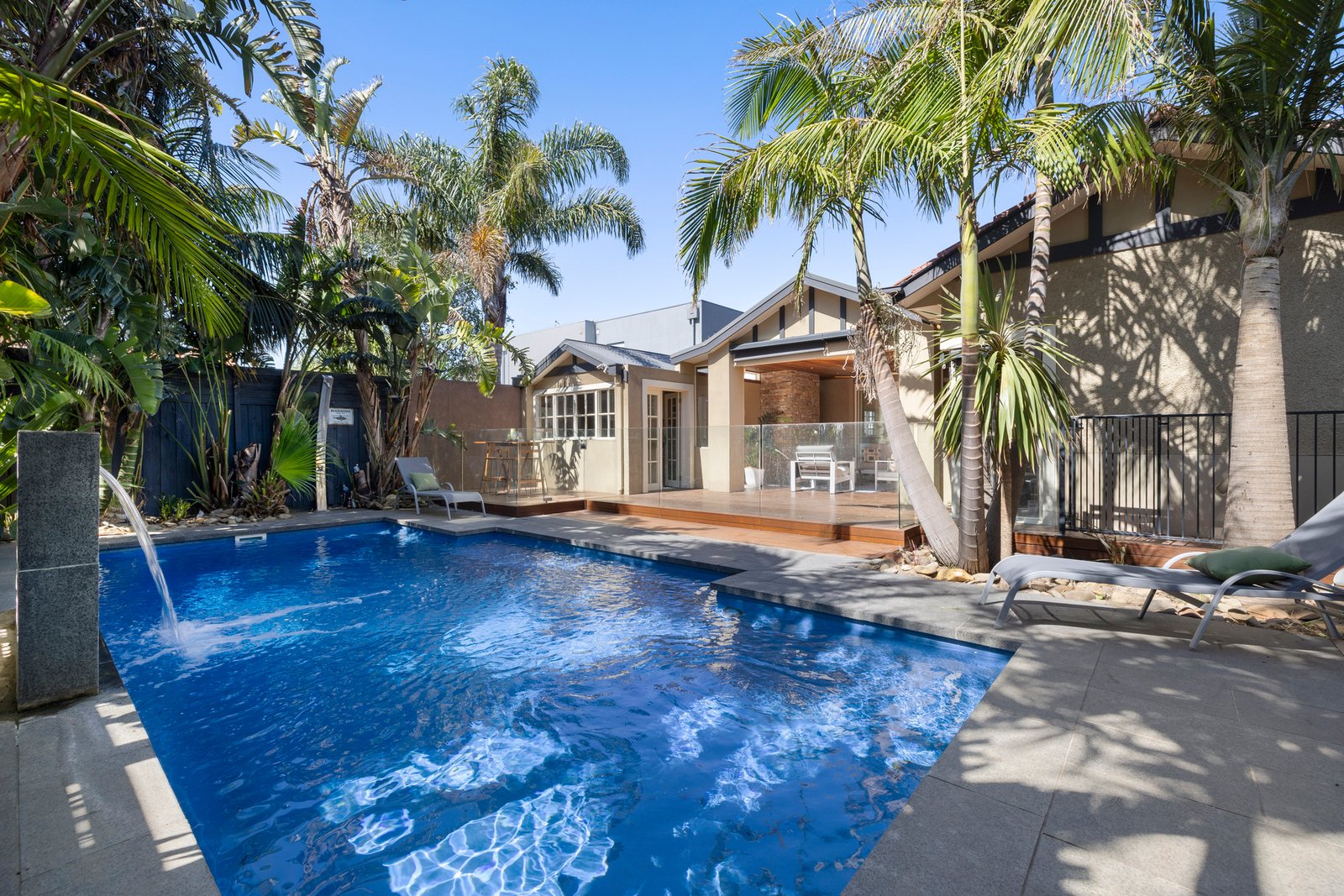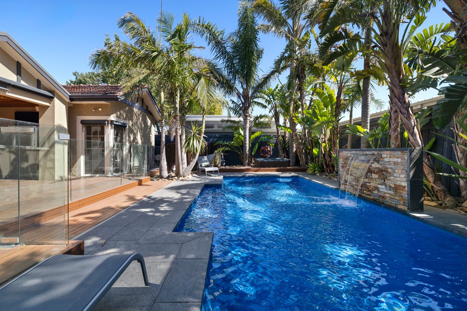 With grand period presence out front and sun-filled resort-living behind, this beachside entertainer offers the best of all worlds! Less than 500m from the bay at this iconic address, this impressive up to four bedroom, two bathroom Californian Bungalow has been reimagined for today's entertaining lifestyle with formal lounge and separate dining (or future fourth bedroom) opening up beyond a grand arched veranda, and state-of-the-art family and al fresco zones flowing out to palm-fringed poolside gardens.