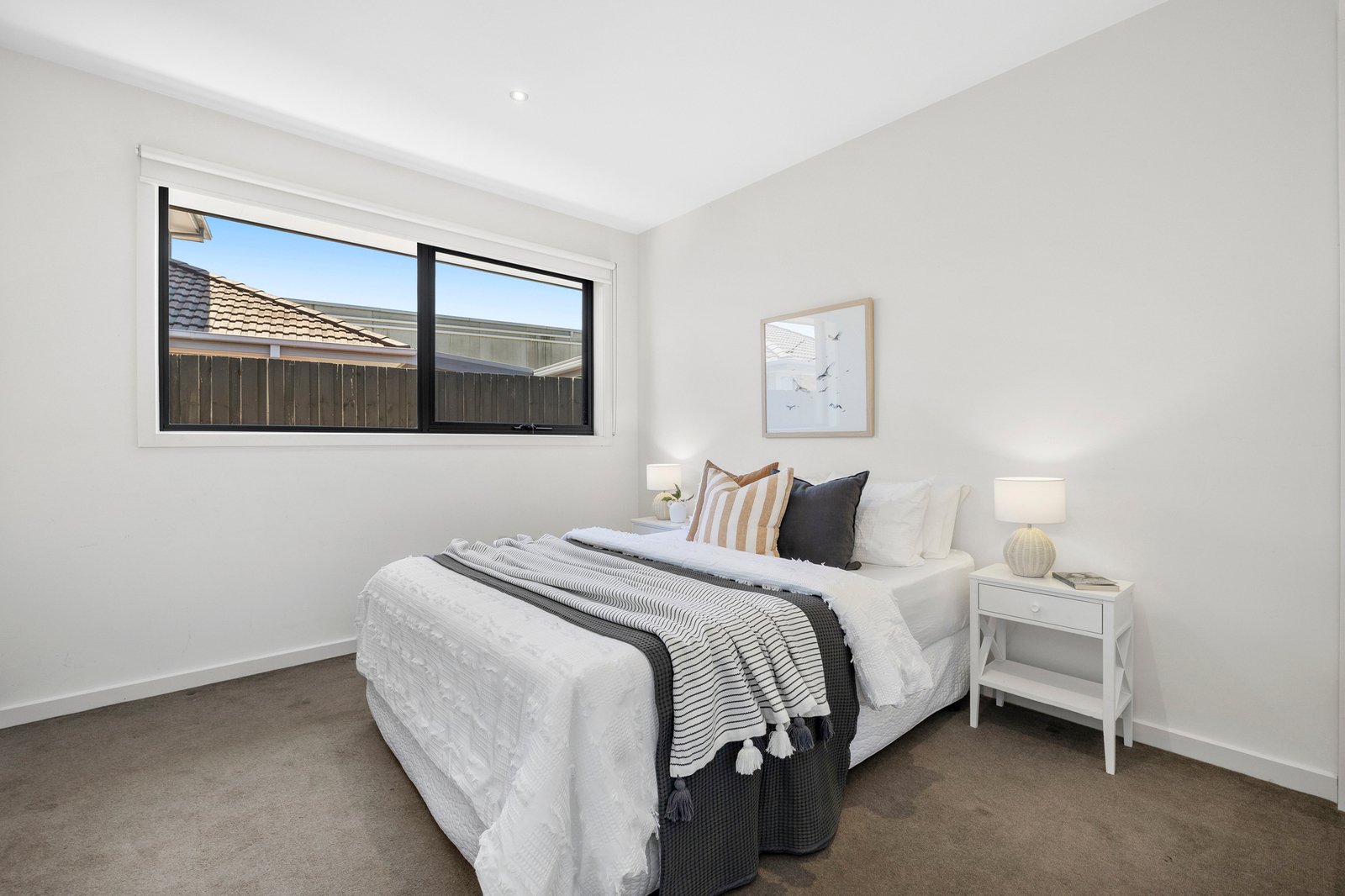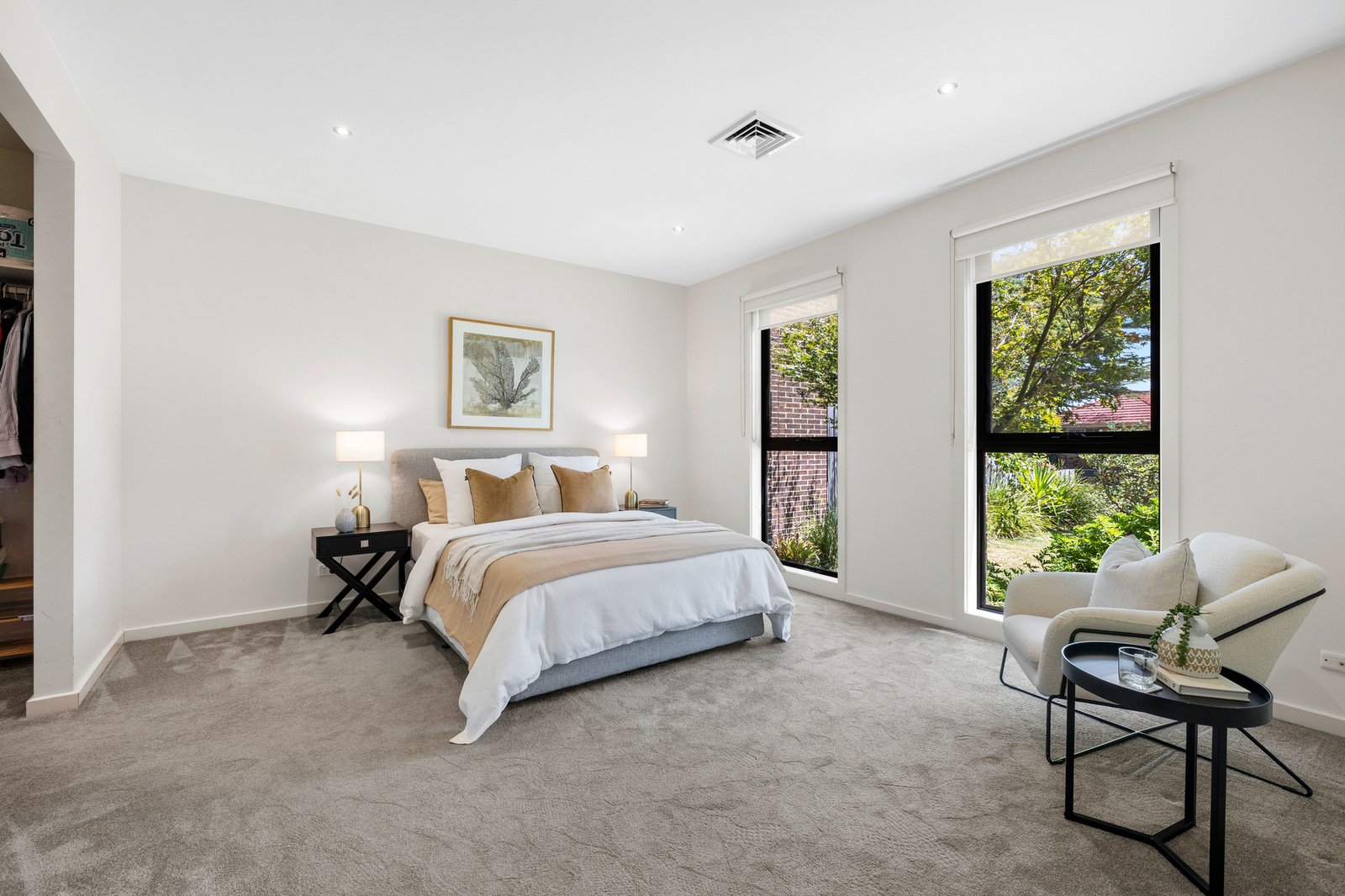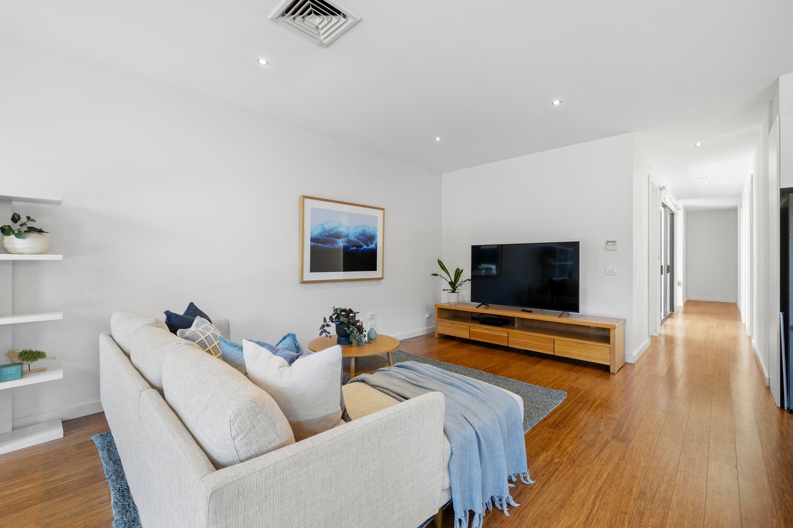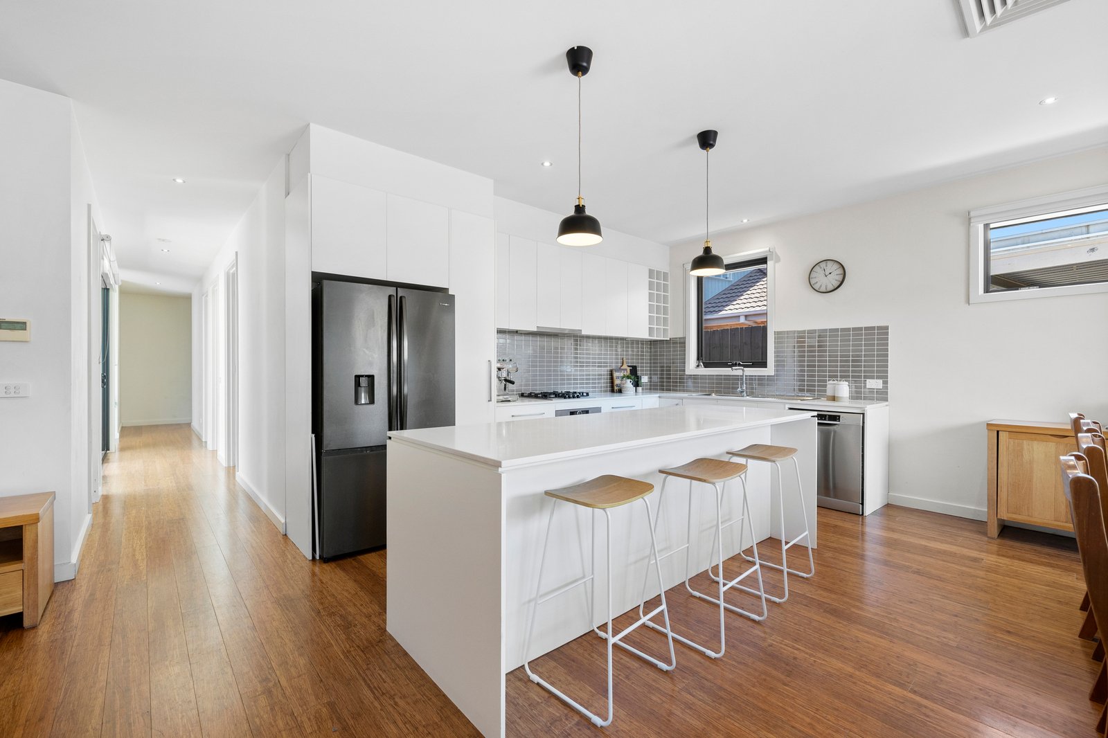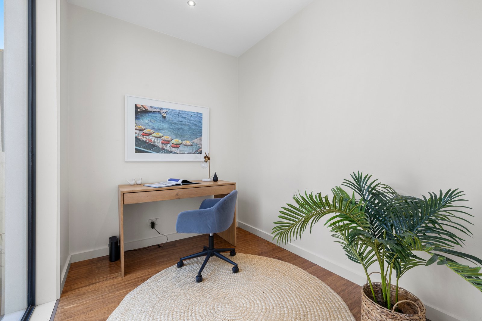 Shining bright with a brilliant home-office lit by an atrium-view, this singularly stylish home has study nooks for each robe-fitted bedroom, glossy bathrooms including an elegant ensuite and a full family-sized laundry in its own sunny spot. With light-filled spaces enhanced by tall windows and designer graces including cool stone benchtops and warm bamboo floors, this climate-controlled home has and velvety bedroom carpets and dual day-night blinds for front-facing windows.