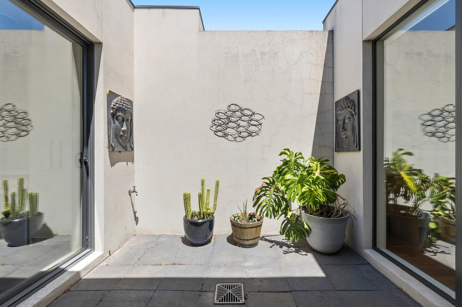 Streetfront, single-level and styled with an eye to quality, this one takes low-maintenance living to the next level. Stepping back from this quiet court along a deep north aspect, this master-built three bedroom plus home-office, 2.5-bathroom home unfolds with room to lounge and dine around a prestige Neff appliance kitchen, a place to hide away in a plushly private master-suite...and a window-walled atrium-courtyard to bring sun to the heart of it all.